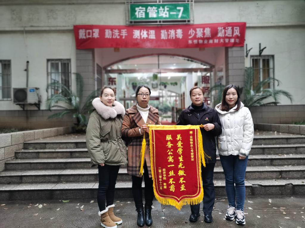 “真心服务为学生,热情关怀暖人心”“关爱学生无微不至,服务公寓一丝不苟”及“尽职尽责排忧解难,关爱学生无微不至”等锦旗上话语,真诚道出学院和学生对宿管阿姨的感恩之心,感谢她们的辛苦付出以及对工作的认真负责。