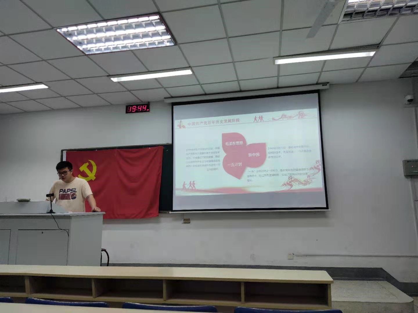 会议第二阶段,由中共预备党员、校研究生会主席马群同志作“学党史、感恩党、跟党走”党史学习教育专题交流会。马群从中国共产党百年历史发展历程、学习党史的重要意义以及“学党史、感恩党、跟党走”三个方面作分享报告。大家纷纷表示通过党史学习,对党史有更加清晰的认识,也深感我党的伟大和在国家发展过程中发挥的巨大作用。