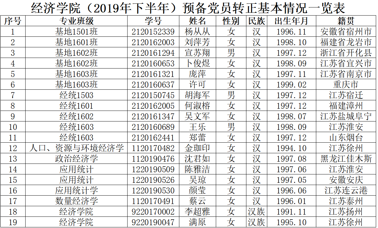 在听取党小组和党员、群众意见的基础上,经支部委员会审查同意,近期将召开支部大会,拟同意杨从从等19名同志转为中共正式党员。根据发展党员工作有关要求,现将其有关情况公示如下: