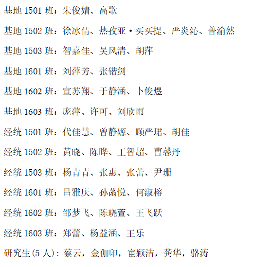 以下同学为团组织向党组织推荐的党的发展对象人选。为了广泛听取群众意见,接受群众的监督,现予以公示。