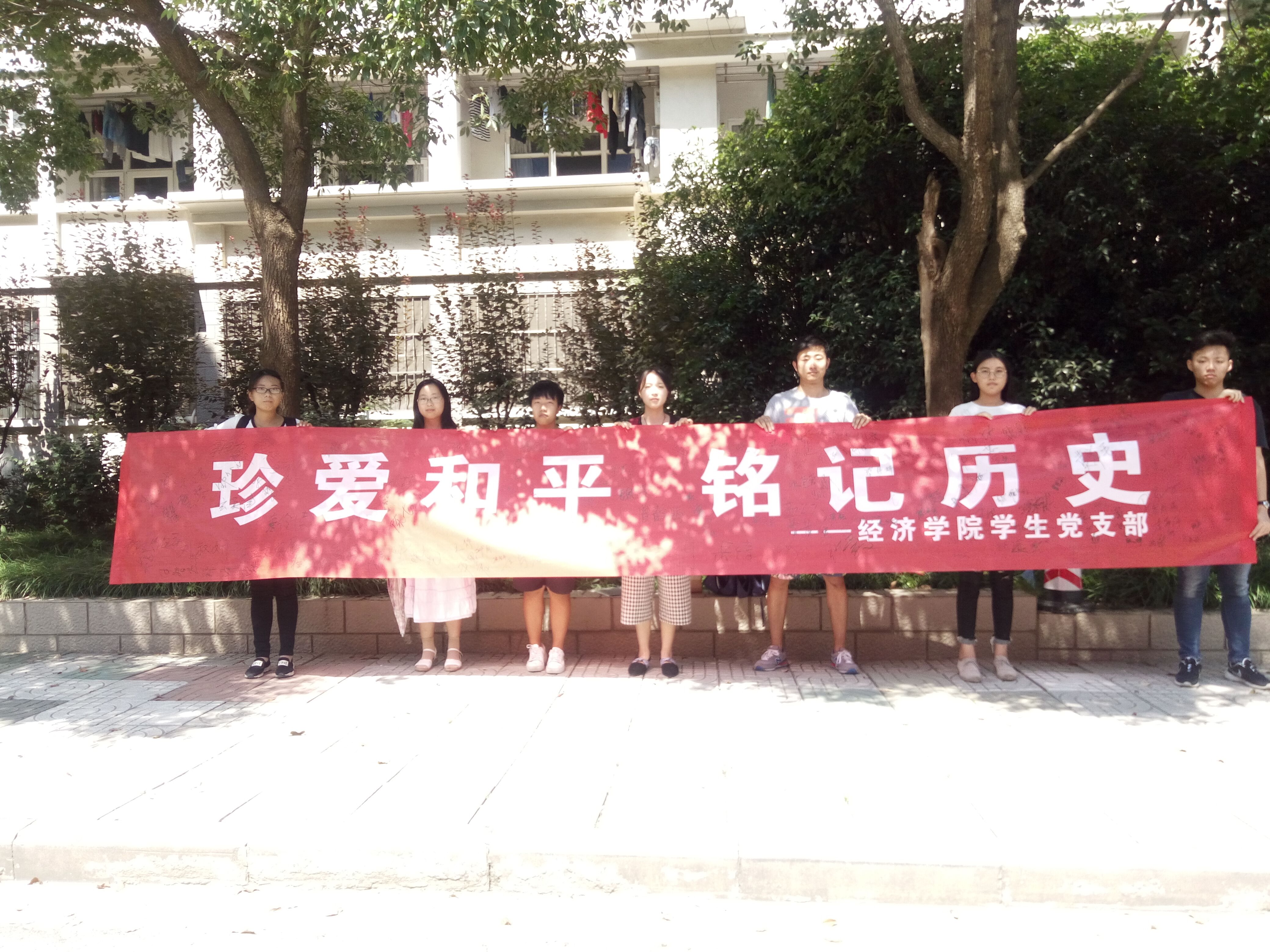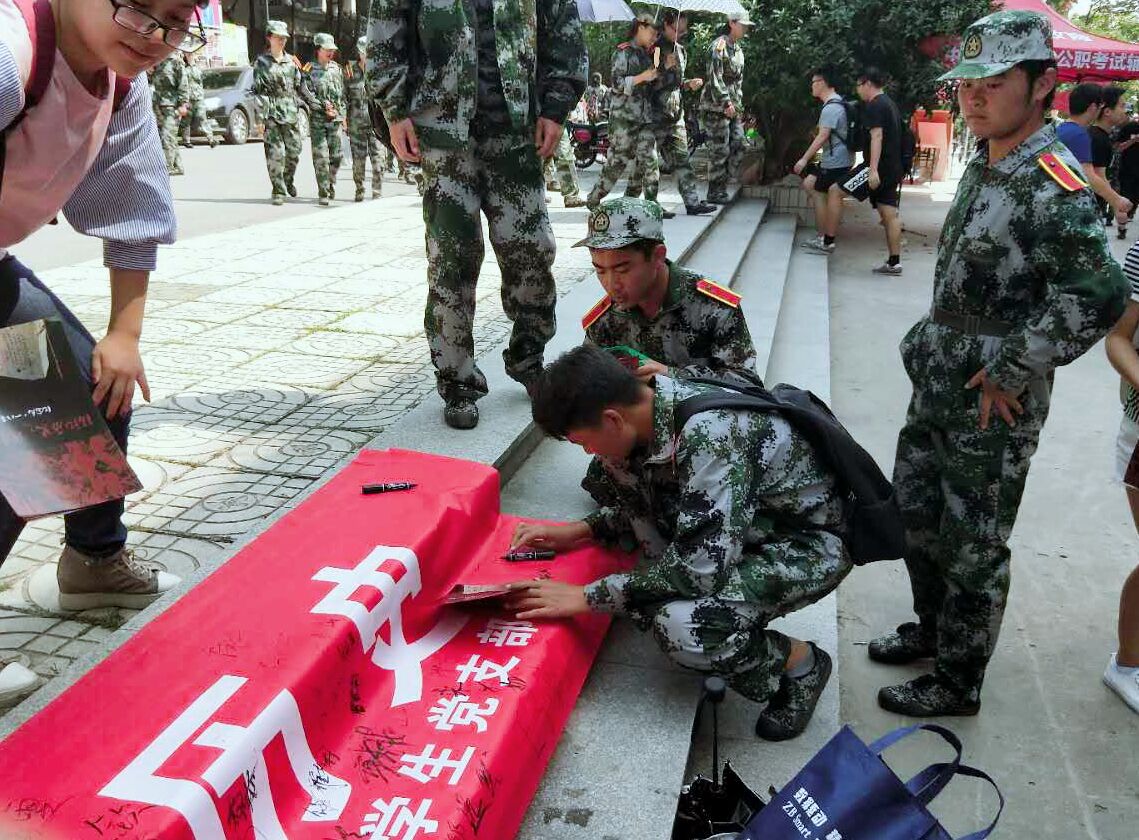 上午十一时许,签名仪式正式开始。我院入党积极分子及学生党员们将印有“珍爱和平 铭记历史”标语的条幅中苑食堂广场处展开,随即引来许多师生驻足签名。师生们纷纷在横幅上肃穆而郑重地签上了自己的名字,表达自己对历史事实的铭记,对和平生活的珍爱。一名刚刚结束军训的陈姓同学签完名后庄重表示:“作为中国人,我将永远记得九一八事变,不忘国耻。作为一名当代大学生,我将为中华之崛起而读书”。