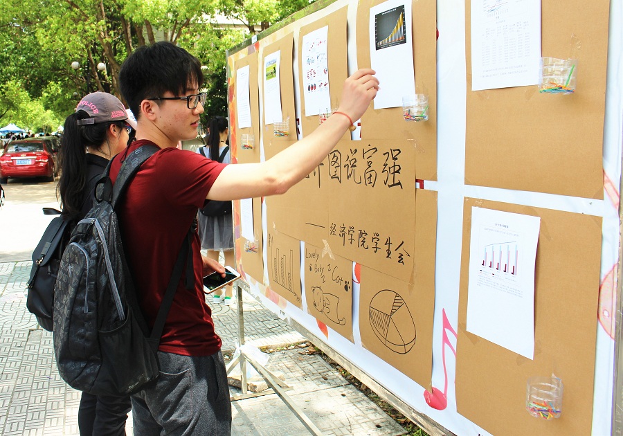 经过初选,10余幅参赛作品脱颖而出。5月12日中午, “一张统计图话富强”终选投票环节在中苑举行。同学们在投票展板前纷纷驻足,专注地观看展板上一幅幅制作精良的统计图和缜密细致的分析文字,并为优秀的作品贴星点赞。最终,经统1301班陈新宇同学的参赛作品《国家的富强之路》获得了一等奖。作者通过前期的数据收集和准确制图,展示了我国在航空航天装备、先进轨道交通装备、机器人装备、高性能医疗器械、高性能船舶、高档数控机床、现代农机装备以及新一代信息技术产业等方面的发展与成就。