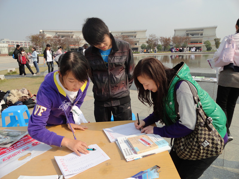 上午11时,活动正式启动,通过身着经协工作服的干事的介绍、引导,许多同学参与到期刊取阅、领取活动中,与此同时,收到邀请的各个学院院会学术部代表、各个社团代表均到达现场参与本活动。每位取阅期刊的同学可在登记后于写有“学术,一种生活态度的”横幅上签名留念,以表对此次活动的支持。