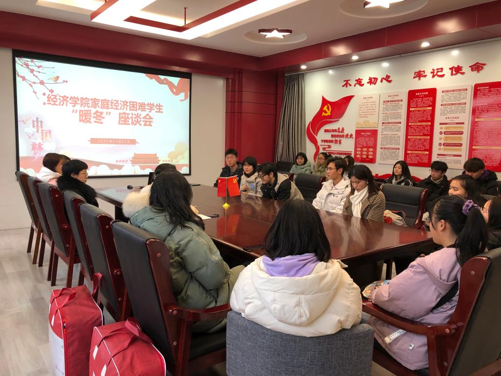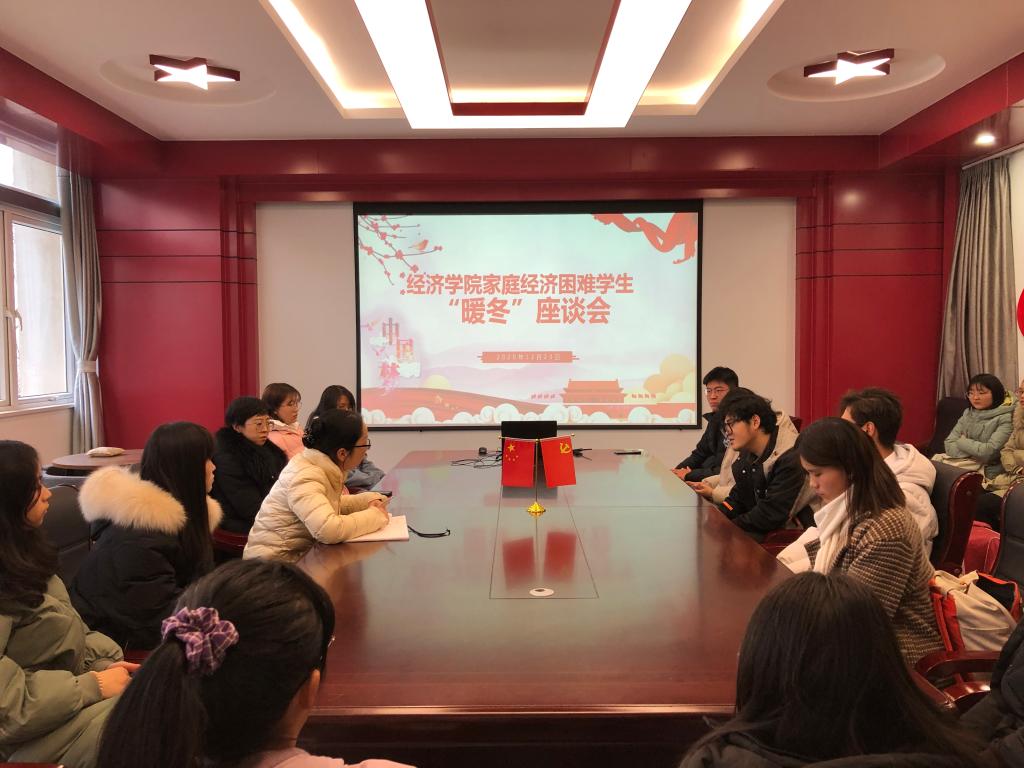 为深入了解我院家庭经济困难学生学习生活现况及实际困难,进一步加强和改进学院资助管理工作,12月23日下午,我院在德经楼329室举行家庭经济困难学生暖冬座谈会,党委副书记袁怡琨、学工办主任尹海燕、2020级辅导员陶海韵和全体2020级家庭经济困难学生参加了此次座谈会。