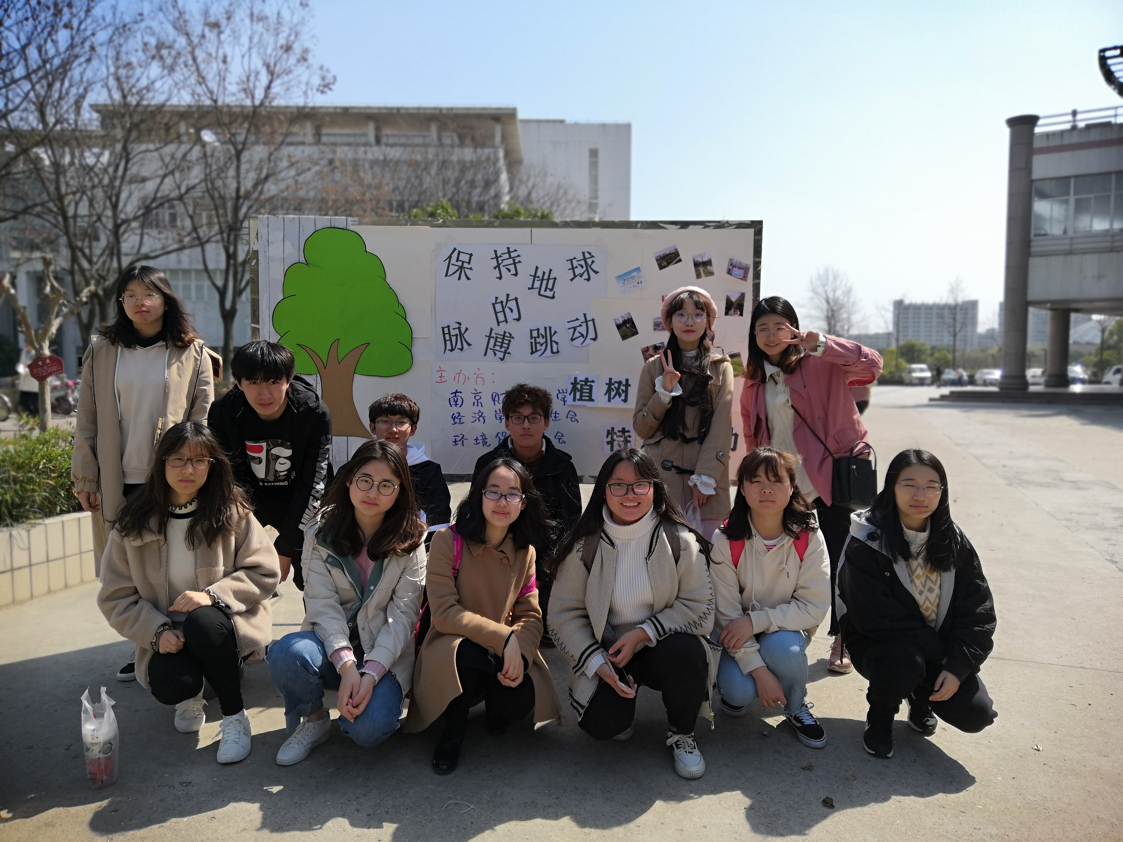 参与活动的同学们感慨万千,纷纷在海报上留下寄语:贡献自己的一份力量,让地球再长出一份绿意;生命在于绿色,希望在于绿色;维护生态环境,爱我南京财大……