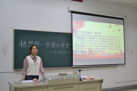 4月27日晚,bat365在线登录网站注册赠送36分团委在德经楼110教室开展“悟思想·劳模大讲堂”活动,分团委副书记、各班级团干部、分团委工作人员及学院部分学生参加了活动。活动分为三个环节,首先,全体同学集体观看五一劳动节宣传视频,明白劳动节的来历,了解中华优秀传统文化;听习近平总书记说给劳动者的“暖心话”,大力营造劳动氛围;通过分享一件件党史小故事,讲述以习近平同志为核心的党中央领导全国人民脱贫奔小康方面取得的伟大历史性成就,激发大家奋发向上的大能量。二是由优秀志愿者学生代表朱海荣和优秀抗疫志愿者冯叶欣开展党史学习教育宣讲活动,讲述自己的志愿者活动经历与感悟,号召大家积极参加志愿活动,大力弘扬热爱劳动、热爱学习、乐于奉献的高尚品质。三是观看学习劳模工匠视频,学习他们在平凡的岗位上默默无闻的奉献精神。然后以小组为单位进行讨论,交流自己的观影心得体会,分享身边的感人故事,大力弘扬劳模精神和工匠精神,学会感恩。