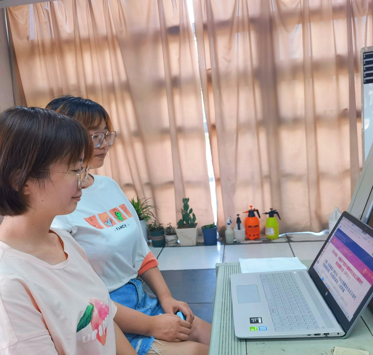2021级研究生在电脑上收看会议实况