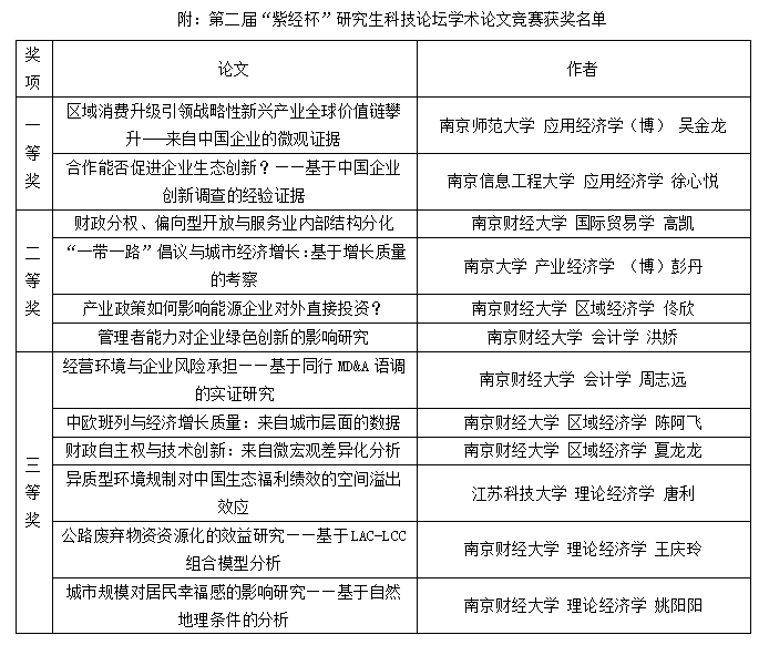 “紫经杯”研究生科技论坛是我校研究生学术活动的传统品牌项目,今年是bat365在线登录网站注册赠送36第二次承办,获得了“射阳港杯”南京财经大学第四届研究生科技文化节的重点立项资助。本次活动旨在鼓励和引导当代青年学子立足于经济学科,探索和研究在新冠疫情影响广泛、逆全球化趋势明显、经济社会发展面临诸多挑战的当下,如何加快构建新发展格局,着力科技创新与经济发展质量的提升。本次科技论坛可谓精彩纷呈,来自不同院校的选手尽情展示学术成果,与评委老师积极请教研讨,展现了新时代研究生的良好风貌。