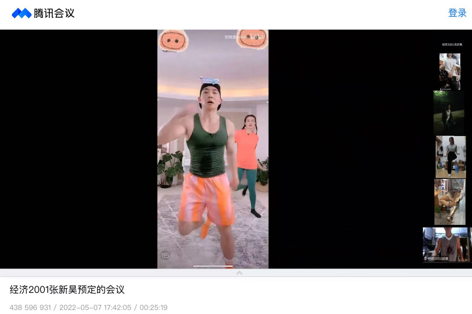 此次活动采取线上跟跳近期爆火的刘畊宏减肥操的形式开展。活动伊始,由主持人简要介绍了此次活动的整体流程,并提醒大家在运动过程中注意安全,根据自身的情况适度跟跳。随后活动开始,同学们纷纷打开了摄像头踊跃参与其中,有些同学还带动了同寝室的舍友一起参与其中,将欢乐的氛围充斥着整个房间。彼时,线上会议室中同学们活力四射的身影,让原本冰冷的会议室变得热火朝天起来。在跟跳完一套运动后,同学们迎来了中场休息时间。为拓展同学们的运动健身常识,主持人与同学们进行了问答互动,问题涉及运动、健身及饮食习惯等,最后抢答成功并且回答正确的同学将会收到特定的小礼物。休息结束后,又迎来了新一轮的跟跳环节,同学们在新一轮的运动中仍然保持昂扬的状态,活力充沛地参与其中,并将自己的运动视频发送给相应的工作人员完成打卡。活动的最后,主持人向同学们分享了有关运动健身的一些常识以及对于此次同学们的参与表示感谢。