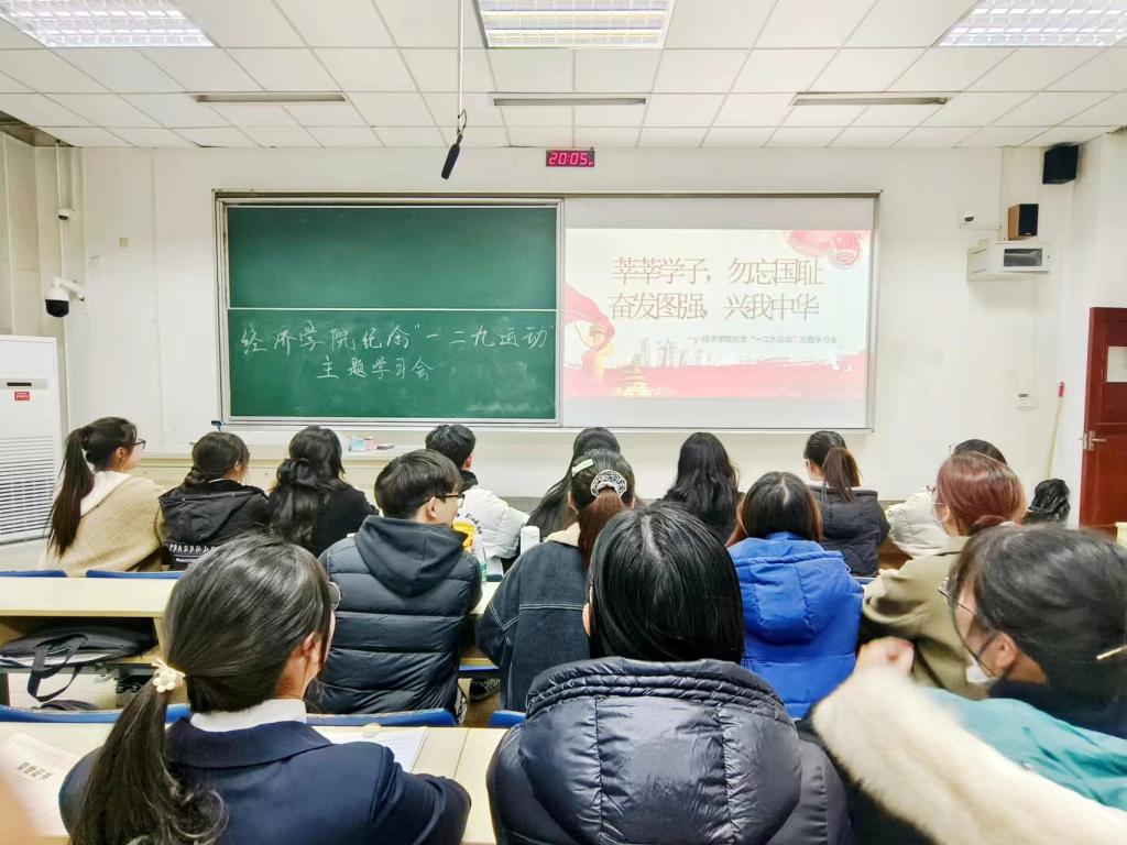 奋斗新时代,青春正当时。桑海瑞带领同学们通过学习回顾了“一二·九运动”的事件背景、过程、结果和运动意义,领略了那段激情燃烧的历史岁月,缅怀革命先烈的爱国情怀和革命精神。他结合党的二十大报告中习近平总书记对青年的殷切寄语:“当代中国青年生逢其时,施展才干的舞台无比广阔,实现梦想的前景无比光明”,呼吁经院学子们怀爱国之心,立报国之志,以史为鉴,开创未来。同学们纷纷表示,新时代青年应该勇敢而执着地向前走,以“一二·九运动”中的爱国学生为榜样,以钢一般的意志,火一样的热情,向着祖国的繁荣、经济的腾飞、民族的振兴而奋勇前进。