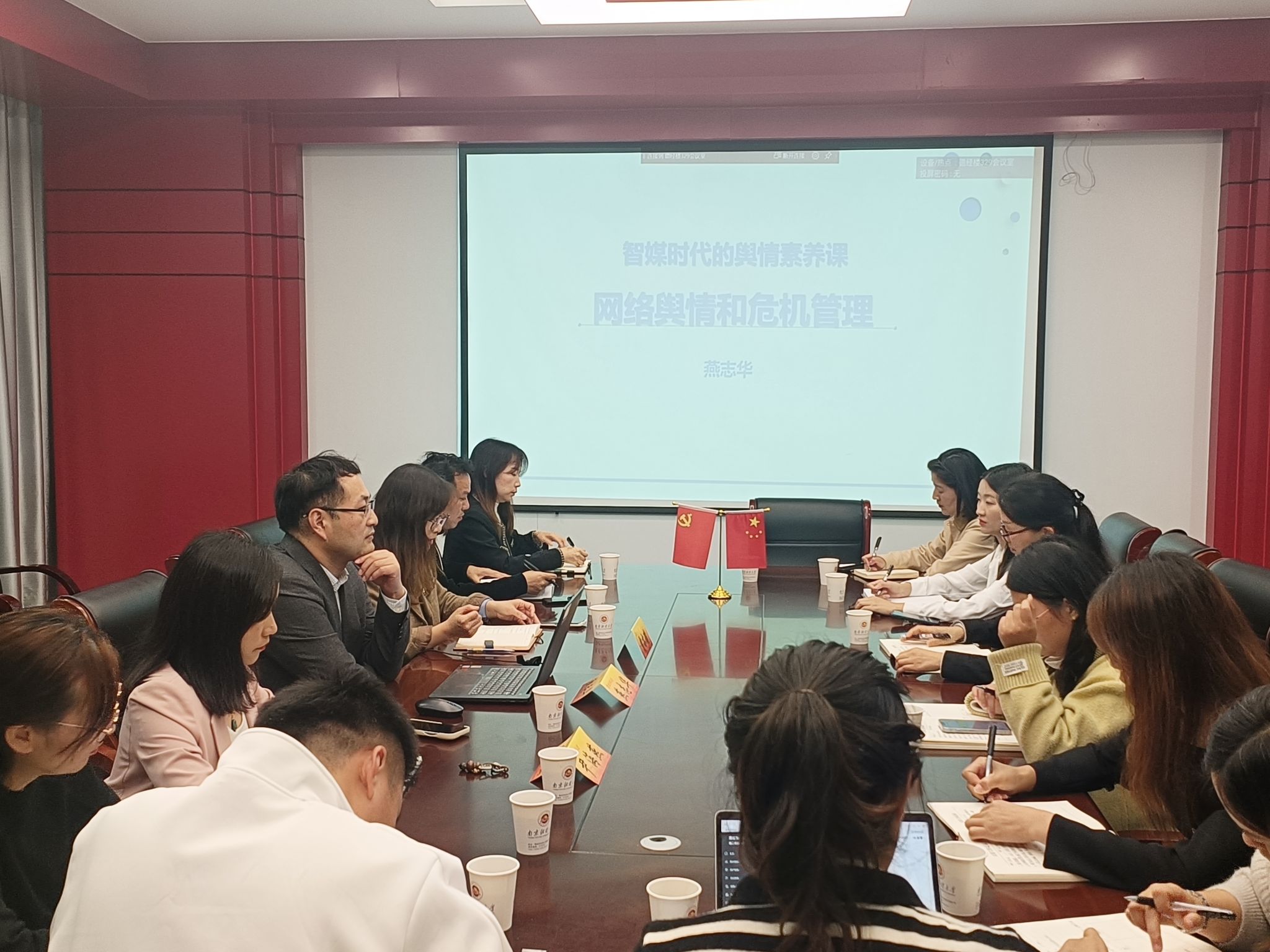 在数字浪潮汹涌的新媒体时代,网络舆情与危机管理已成为高校工作中不可忽视的重要课题。为进一步提升辅导员队伍的专业素养和校园危机应对能力,11月13日下午,我院与工商管理学院联合举办了“辅导员素质能力专题培训:新媒体时代的网络舆情和危机管理”专题培训。此次培训邀请了知名舆情管理专家燕志华教授担任主讲嘉宾,两学院全体辅导员参加了此次培训,培训由我院党委副书记贾亦璞主持。