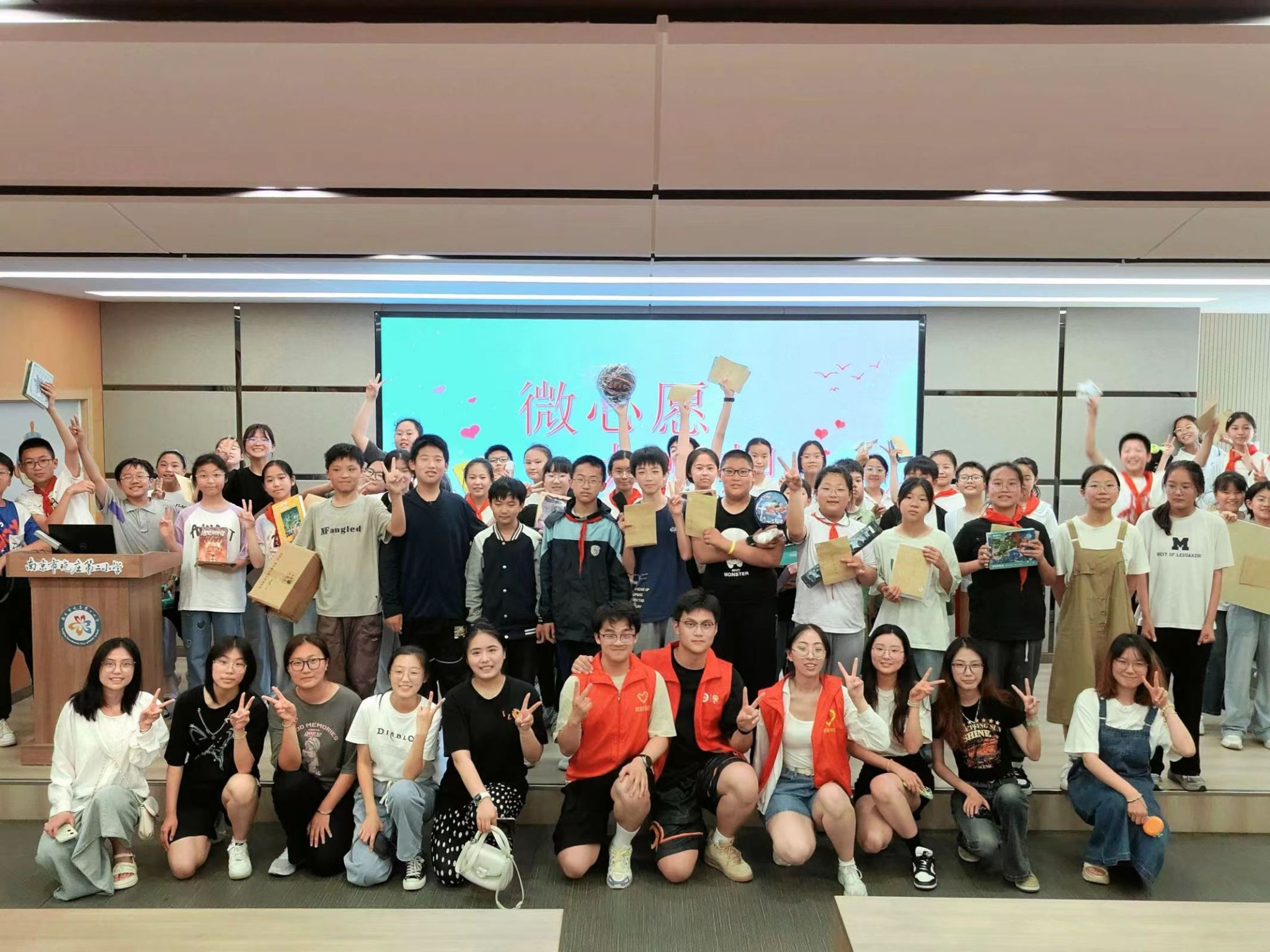 在“六·一”国际儿童节即将来临之际,bat365在线登录网站注册赠送36的志愿者们来到了南京晓庄第二小学,带来了孩子们期盼已久的心愿礼物。孩子们在礼堂等待着,怀着兴奋与激动的心情,期待着志愿者哥哥姐姐们将礼物送到自己的手中。志愿者们有条不紊地分发孩子们的心愿礼物,被喊到名字的小朋友激动地跑上前来,向志愿者们道以真挚的感谢,整个礼堂都洋溢着孩子们的欢声笑语。最后,bat365在线登录网站注册赠送36的志愿者们和南京晓庄第二小学的孩子们合影留念,记录下了这一难忘的瞬间。