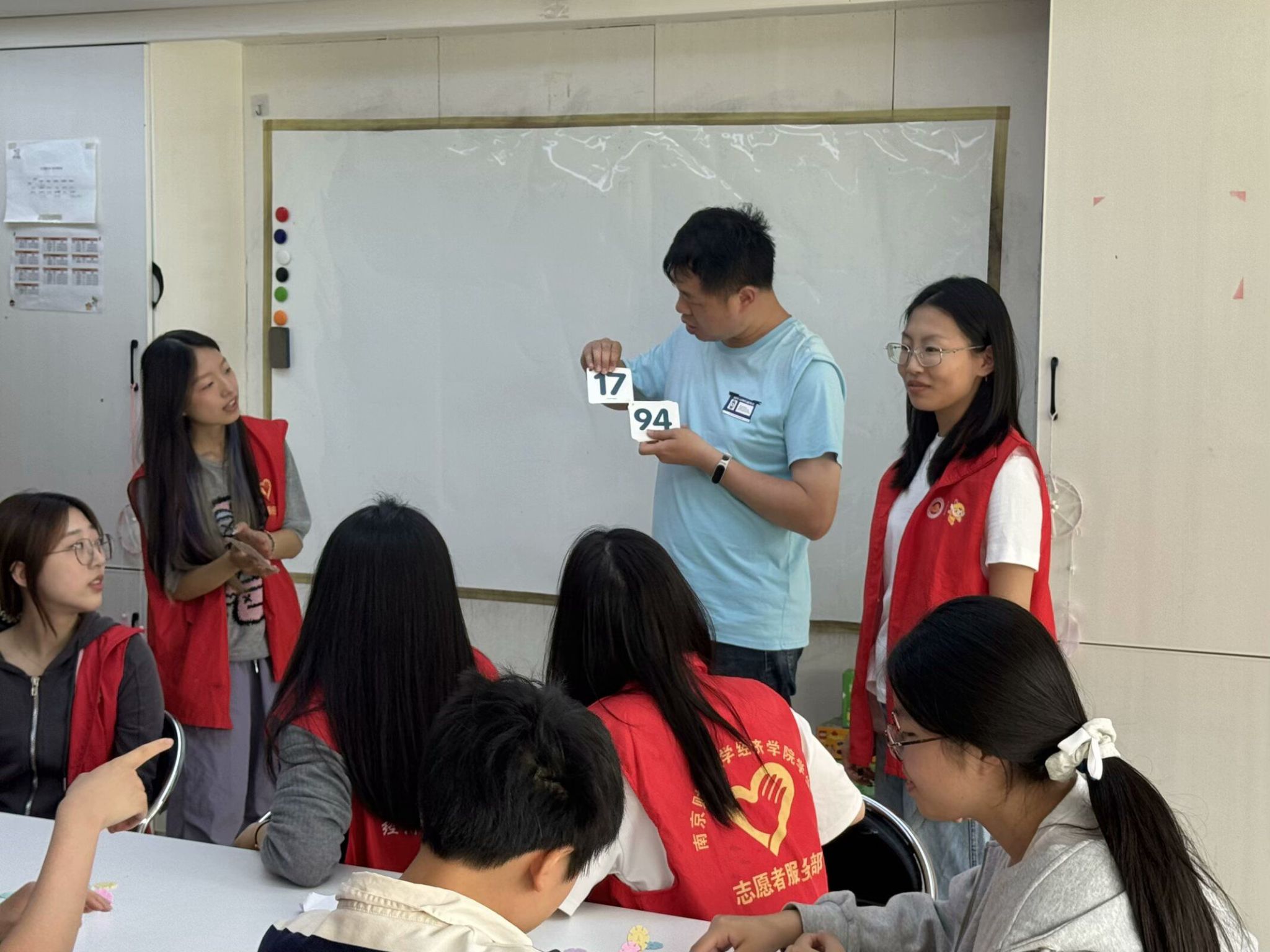 4月10日,bat365在线登录网站注册赠送36学生会组织20余名志愿者走进雨花睿泽残障人士服务中心,为心智障碍人士和部分自闭症群体开展了一场别开生面的“‘数’说心声,‘统’聚关爱”主题志愿活动。这类人群在认知、社交与沟通表达等方面存在不同程度的发展障碍,难以像普通人一样自如地学习和理解知识,对数字的认知更是难上加难 。本次活动依托学院统计学专业优势,以趣味数字教学和互动游戏为载体,旨在提升他们的数字认知能力,传递社会温暖,同时引导经院青年在实践中深化社会责任意识,弘扬志愿服务精神。