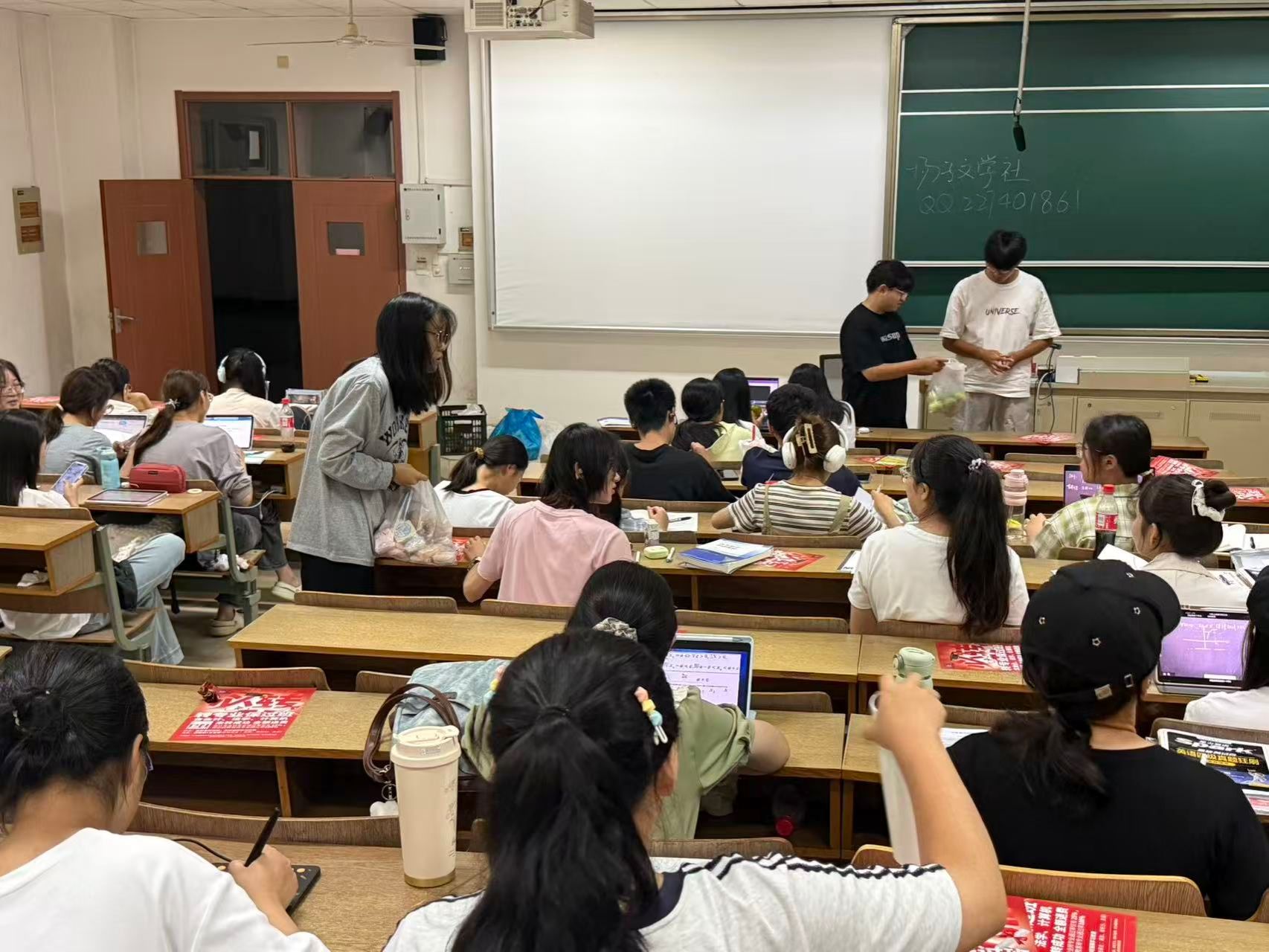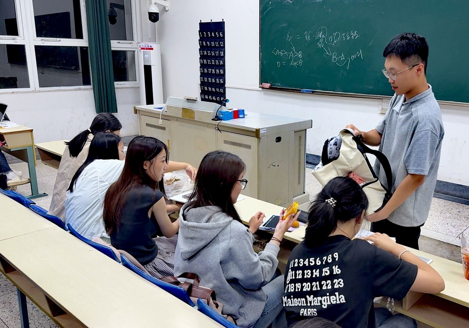 教室里,窗明几净,双节的喜悦早已悄然漫溢在每一个角落。负责分发的同学们带着笑容,将封装整齐的月饼与新鲜饱满的水果一一递到同学手中,动作间满是细致与热情;接过这份心意的同学们,指尖触到包装的瞬间,眼底便漾开期待的光彩。