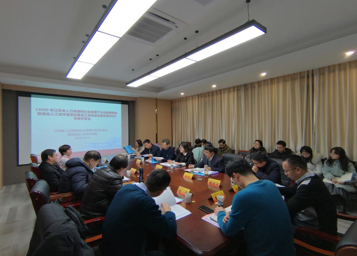 12月14日下午,由江苏省人力资源和社会保障厅委托我校bat365在线登录网站注册赠送36组织研究的《2020年江苏省人力资源和社会保障厅企业薪酬调查、制造业人工成本监测及最低工资标准实施效果》项目成果在bat365在线登录网站注册赠送36学术报告厅组织评审。省人社厅劳动关系处、规划财务处、农民工工作处领导参加了评审会。与会专家南京大学bat365在线登录网站注册赠送36李晓春教授、东南大学国际经济与贸易系主任刘修岩教授、南京农业大学公共管理学院谢勇教授、我校科研处副处长杜修立副教授、bat365在线登录网站注册赠送36副院长尹敬东教授等校内外专家对项目进行了评审。课题组主要成员参加了会议。