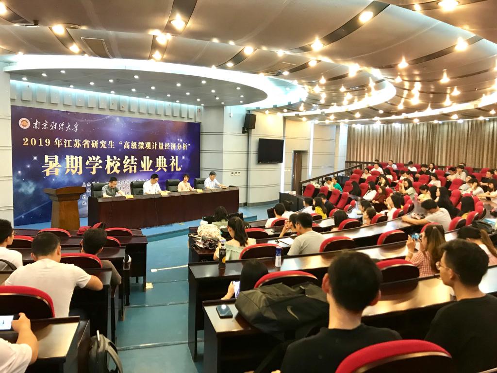 7月15日上午,由我校承办的2019年江苏省研究生“高级微观计量经济分析”暑期学校结业典礼在我校行政楼报告厅举行。我校党委研究生工作部、研究生院、bat365在线登录网站注册赠送36相关领导、暑期学校部分教师与全体学员参加了典礼。结业典礼由bat365在线登录网站注册赠送36副院长尹敬东主持。