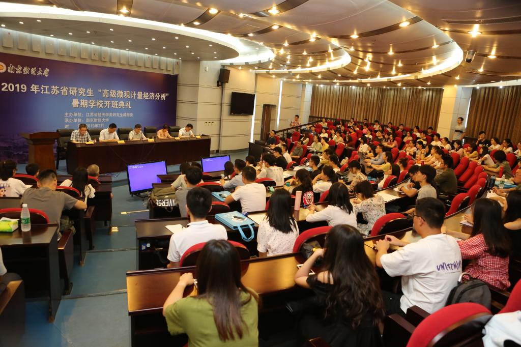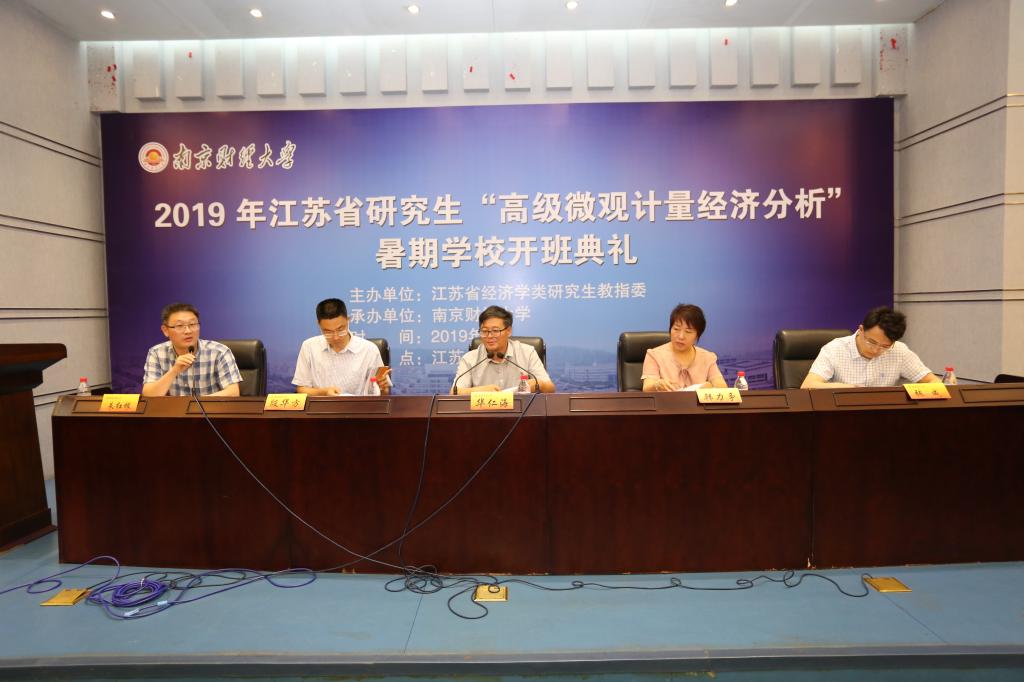 7月7日上午9:00,由江苏省经济类研究生教指委主办、南京财经大学承办的2019年江苏省研究生“高级微观计量经济分析”暑期学校开班典礼在南京财经大学仙林校区行政楼报告厅举行。江苏省经济类研究生教指委主任委员、南京财经大学副校长华仁海出席开班典礼并讲话。校党委研究生工作部部长韩力争、校研究生院院长殷华方、bat365在线登录网站注册赠送36院长朱红根、江苏省经济类研究生教指委秘书长张成、以及bat365在线登录网站注册赠送36部分领导、暑期学校相关教师与来自国内42所知名院校的114名研究生学员共同参加了开班典礼。bat365在线登录网站注册赠送36院长朱红根主持了典礼。