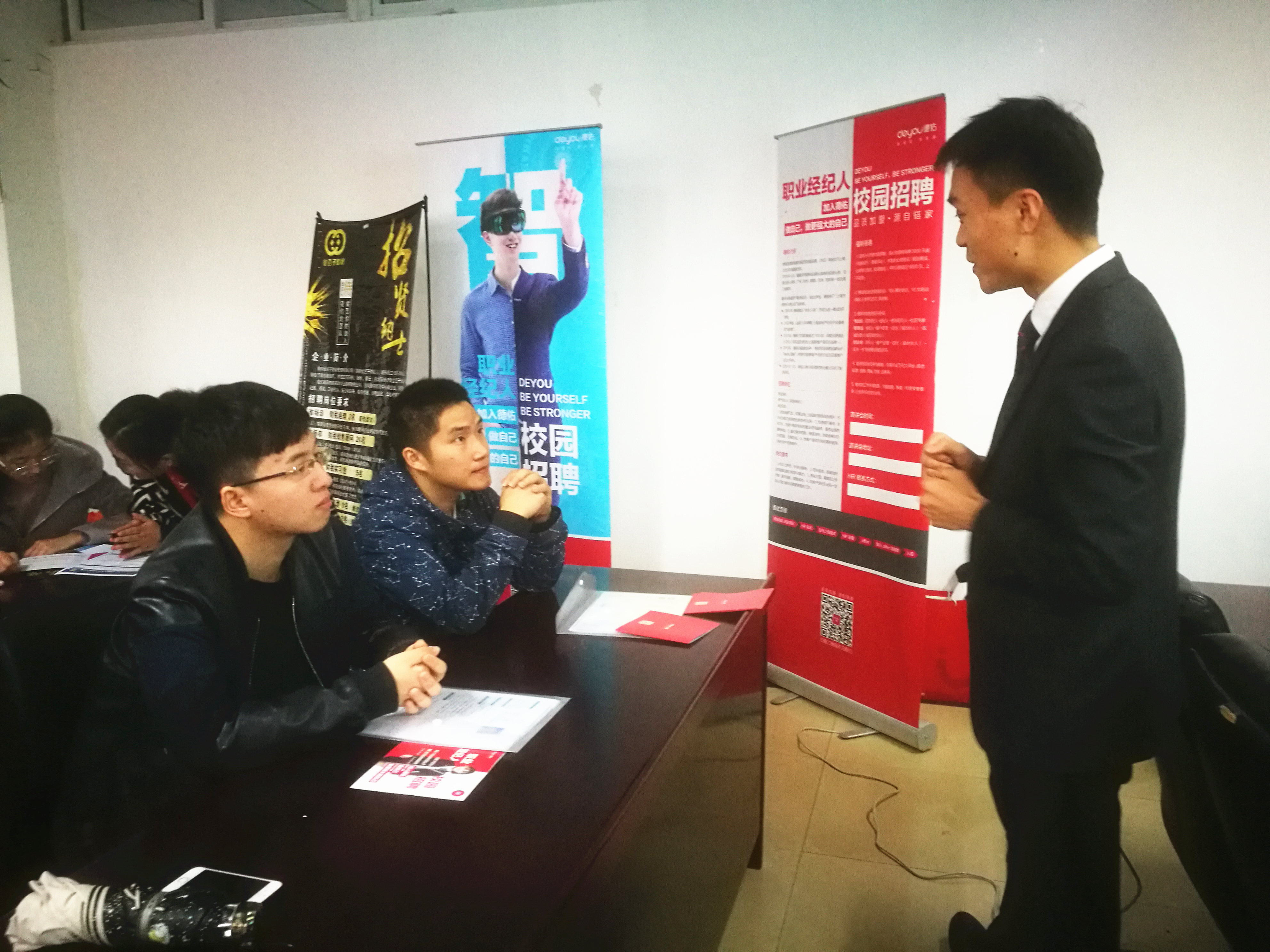 招聘会上,来自宁波银行、新华人寿保险股份有限公司、德祐地产、国联证券、译林教育管理咨询有限公司和金豆子财务管理有限公司的招聘专员就公司情况、公司文化、岗位职责、任职资格、未来发展和工资待遇等对在场学生进行宣讲和交流。多名毕业生积极投递简历并与公司现场达成就业意向。