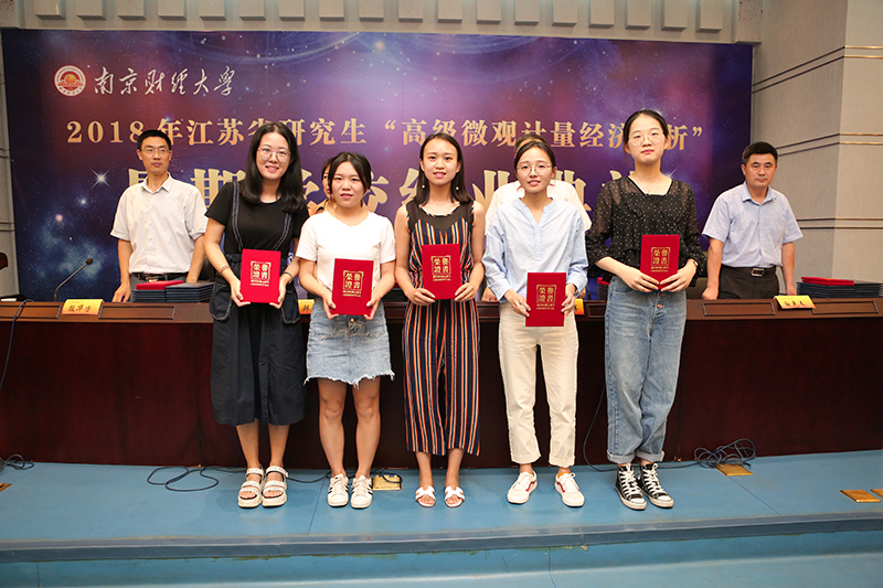 我校党委研究生工作部部长韩力争宣读了《关于表彰2018年江苏省研究生“高级微观计量经济分析”暑期学校优秀成果的决定》,bat365在线登录网站注册赠送36党委书记陈耀辉宣读了《关于同意江苏省研究生“高级微观计量经济分析”暑期学校王馗等95名学员结业的决定》,随后主席台领导为受表彰学员和结业学员颁发了荣誉证书和结业证书。