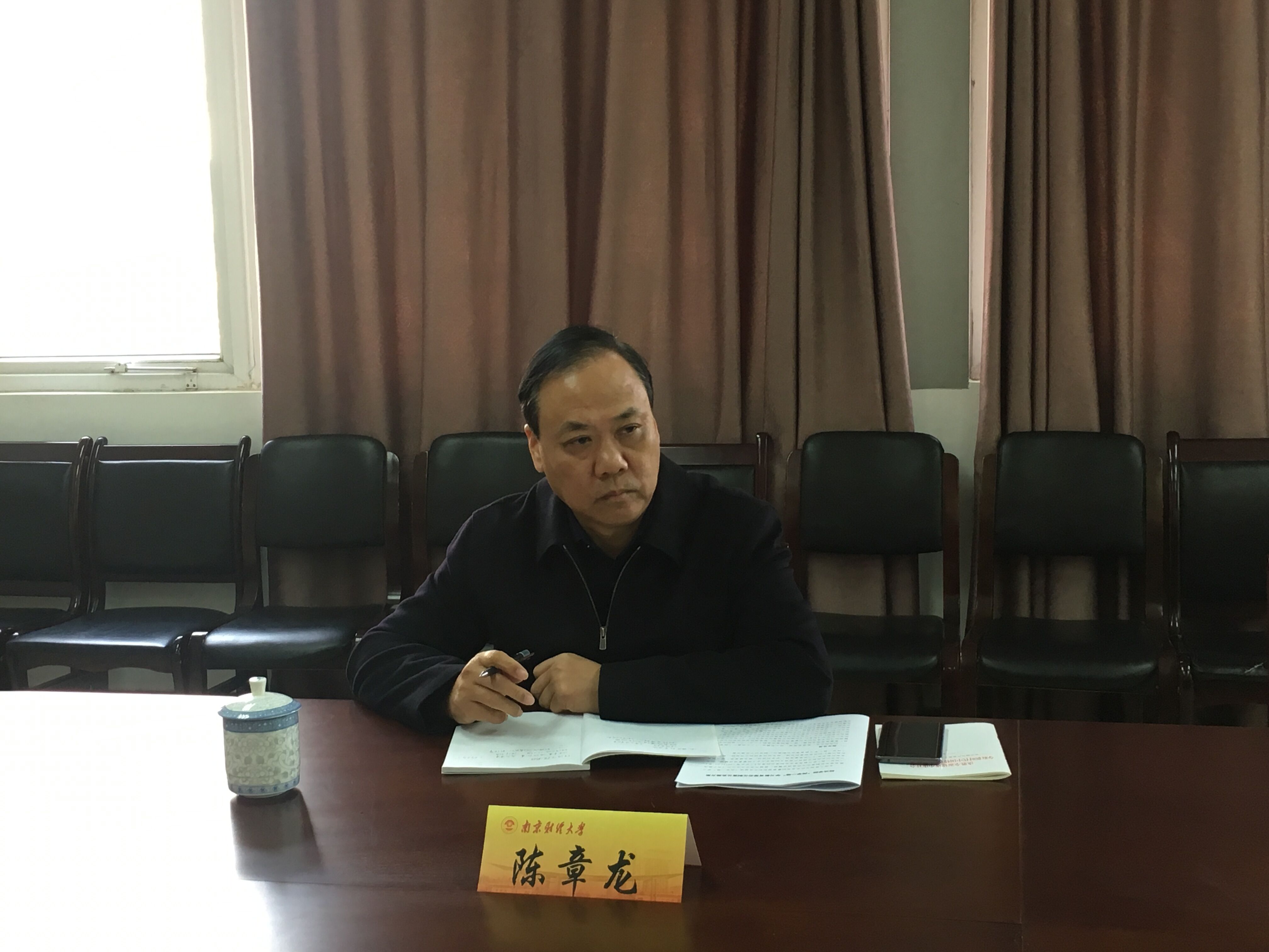 1月8日下午,陈章龙书记到我院走访调研,了解我院学习贯彻党的十九大精神及开展“两学一做”学习教育常态化制度化的相关情况,学院在德经楼323会议室进行专题汇报,校党办、校办主任孙彬、我院领导班子全体成员参加了此次汇报座谈。
