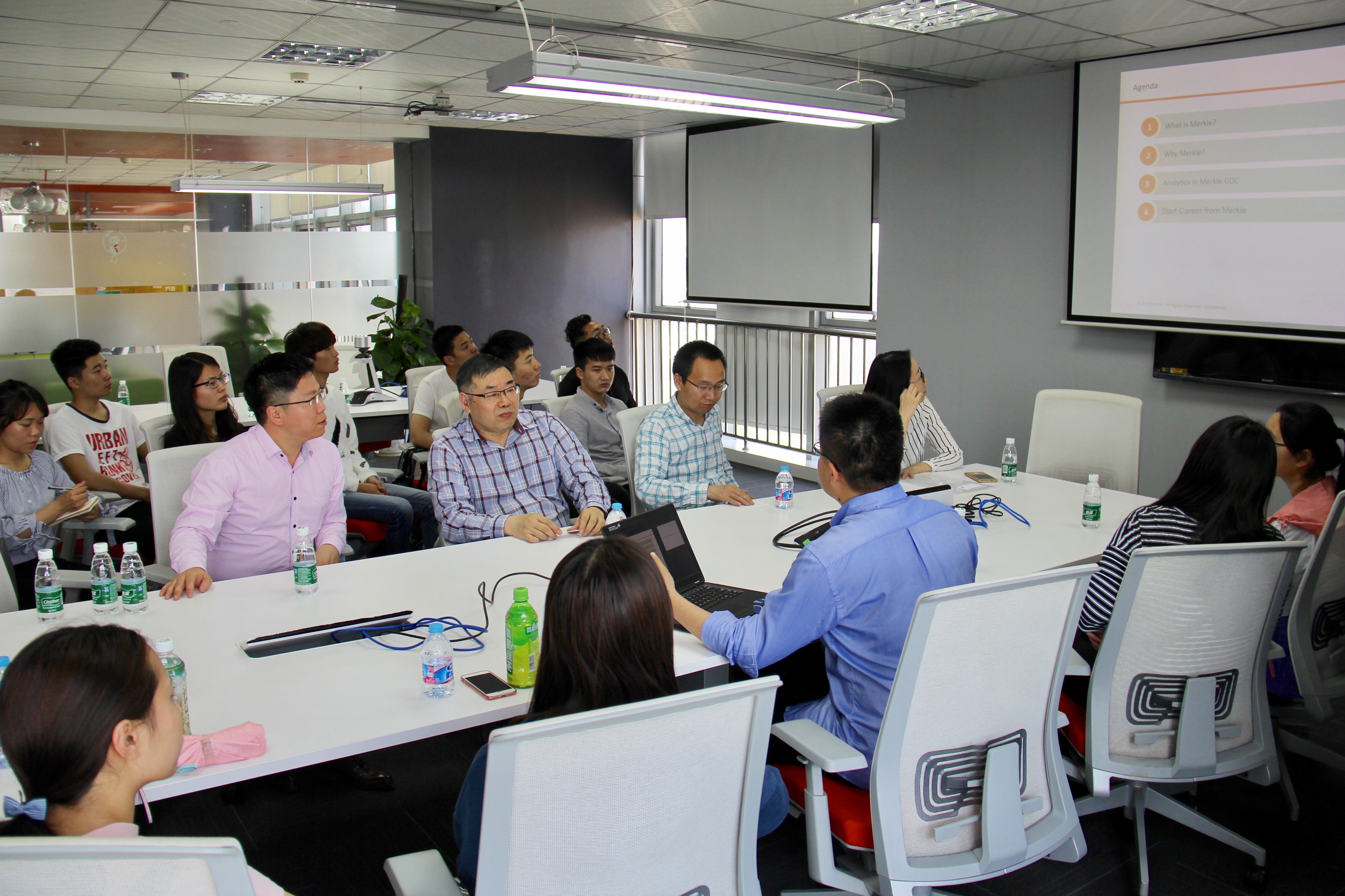 美库尔公司数字分析方案总监邓志刚代表公司对我院来访教师和同学表示热烈欢迎,并向同学们具体介绍了美库尔公司的主要业务、企业文化,以及公司在人才引进、促进员工发展等方面的具体举措。邓总监对目前在美库尔公司工作的十余位bat365在线登录网站注册赠送36毕业生、实习生的综合素养表示了充分肯定和称赞,并表示愿意和学校一道,开展深入交流和合作,不断提高人才培养质量,实现校企双赢。我院陈耀辉书记对美库尔公司一直以来的支持表示感谢,并提到,在当前形势下,我院结合经济统计学专业特点和学生特点,在继续做好理论教学的基础上,也在通过多种渠道不断提高学生的实践能力。他希望学院与美库尔公司之间的交流与合作能够向多模式、深层次方向发展,并邀请美库尔公司参与到学生的实习、实训教学环节中,共同培养适合社会发展需要的大数据相关应用型人才。美库尔公司营销方案部(高级分析)经理陈敏以案例分析的形式给在校同学介绍了公司的主要业务及相关能力要求,并带领同学们实地参观了公司各个部门。