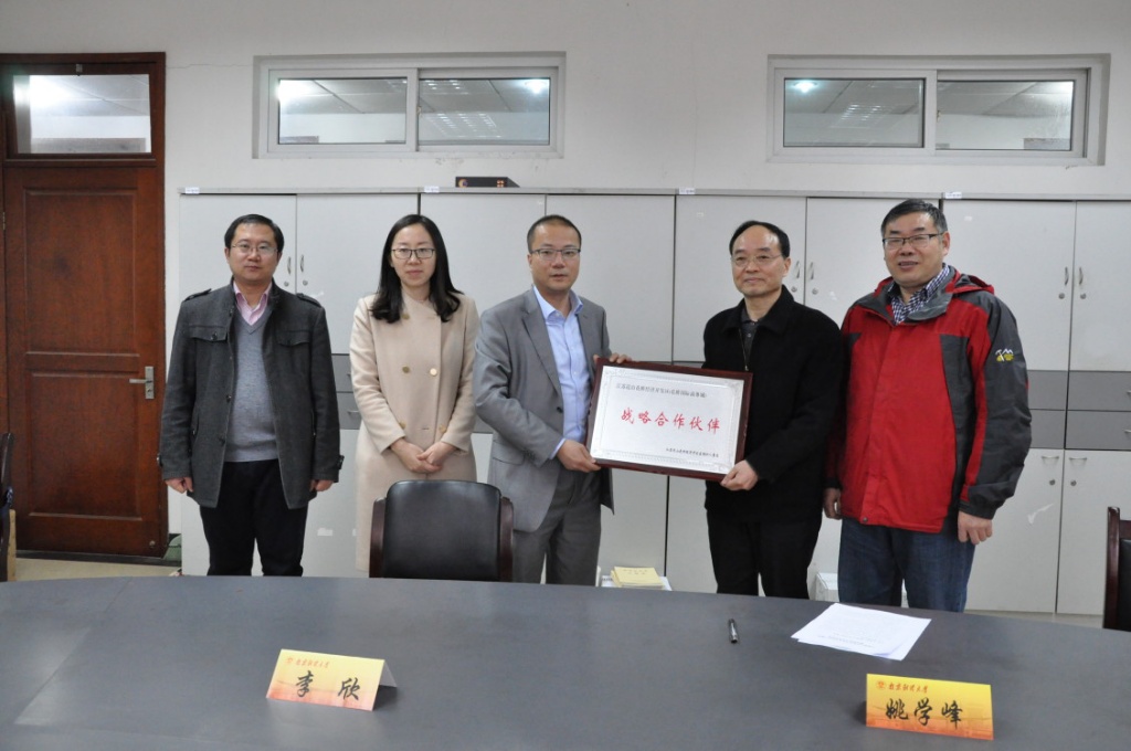 在战略合作启动仪式上,姚学峰处长介绍了我校毕业生的基本情况;陈耀辉书记介绍了我院的基本情况,我院大数据研究的基本情况;李欣副镇长介绍了花桥人才工作以及应届生招聘工作开展的基本情况,表示将在大数据研究、学生创业支持等方面加强与我校的合作;李欣副镇长与姚学峰处长签订了战略合作协议,并授予我校大学生就业指导中心江苏昆山花桥经济开发区战略合作伙伴铜牌。