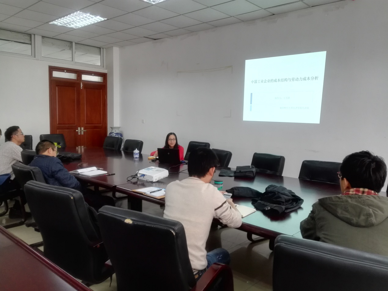 2016年12月5日(周一)下午2点,bat365在线登录网站注册赠送36在经济学科楼307举办了长三角“收入分配与经济增长”学术论坛第十一次报告。报告题为《中国工业企业的成本结构与劳动力成本分析》,报告人为本院副教授王万珺博士。本院和财税学院部分老师参加了讨论。