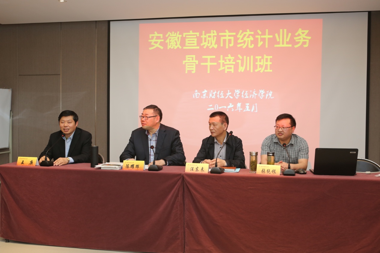 2016年5月23日,我院举行安徽宣城市统计业务骨干培训班开班典礼,宣城市统计局局长汪东来和副局长张纯根、陈耀辉院长和王庚教授出席开班典礼。陈耀辉院长代表我院对汪东来局长一行的到来表示诚挚欢迎,并简要介绍了我院近年的发展状况。