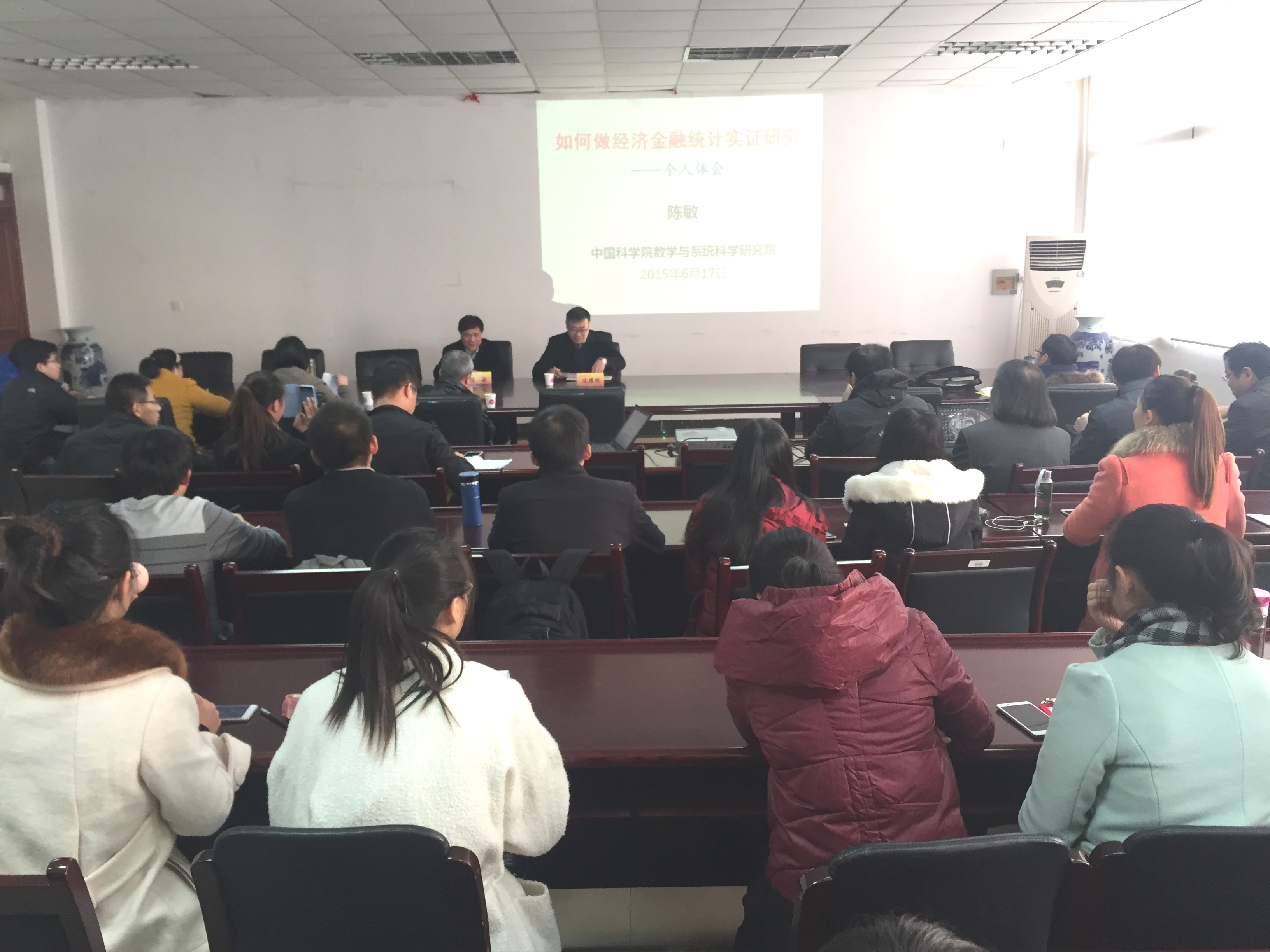 12月4日下午,应我院邀请,中科院数学与系统科学研究院副院长、博士生导师陈敏教授来我校讲学,在仙林校区经济学科楼307会议室作了题为“如何做好经济与金融统计实证研究”的报告。报告会由学院副院长(主持工作)陈耀辉主持,学院相关师生聆听了报告。