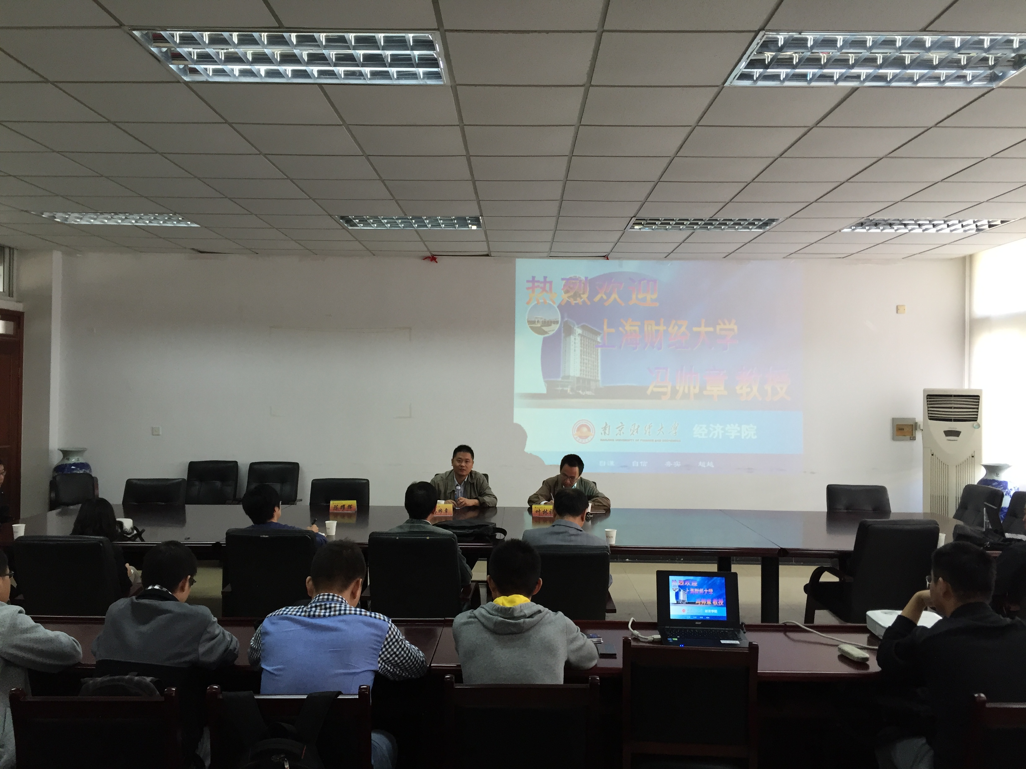 2015年10月15日,“国家杰出青年科学基金”获得者,人社部“有突出贡献中青年专家”,上海财经大学冯帅章教授应我院邀请做客南财论坛,学院部分教师与研究生参加论坛, 论坛由我院副院长叶林祥主持。