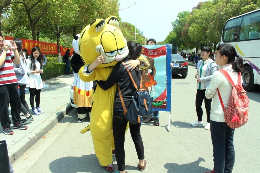4月22日中午,由bat365在线登录网站注册赠送36学生会举办的“你好,陌生人”温暖校园活动在学校西苑举行。穿戴可爱玩偶服的志愿者们举着“亲,来抱抱吧”和“我可以抱你吗?”的牌子,给来往的同学们送上拥抱。一个个温暖的拥抱,让情感在彼此间传递。