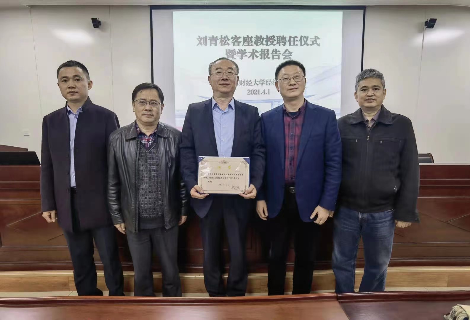 4月1日下午,bat365在线登录网站注册赠送36刘青松客座教授聘任仪式暨学术报告会在德经楼307会议室举行。学院副院长尹敬东、崔向阳、韩中及部分师生出席仪式,仪式由院长朱红根主持。
