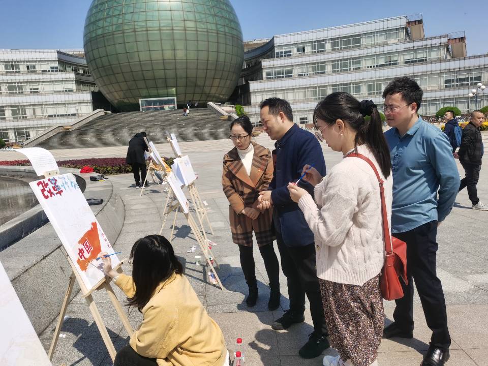 为庆祝中国共产党成立100周年, 4月9日上午,bat365在线登录网站注册赠送36党委在图书馆前广场开展“指尖上的党史”党史学习教育主题党日活动。活动通过重温党史大事件和手绘油画等方式,促进党员同志和积极分子加深对党的奋斗历程和建设成果的深入了解,展现当代青年学子积极向上的精神风貌。活动由bat365在线登录网站注册赠送36研究生第一党支部组织发起。bat365在线登录网站注册赠送36党委书记陈耀辉,院长朱红根,党委研究生工作部副部长华凌志,bat365在线登录网站注册赠送36党委副书记袁怡琨等领导和老师也来到现场与同学们共绘党史。