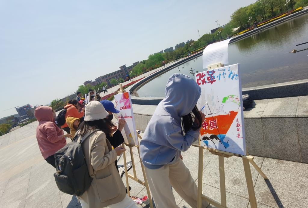 活动现场同学们用画笔为党庆活动增色