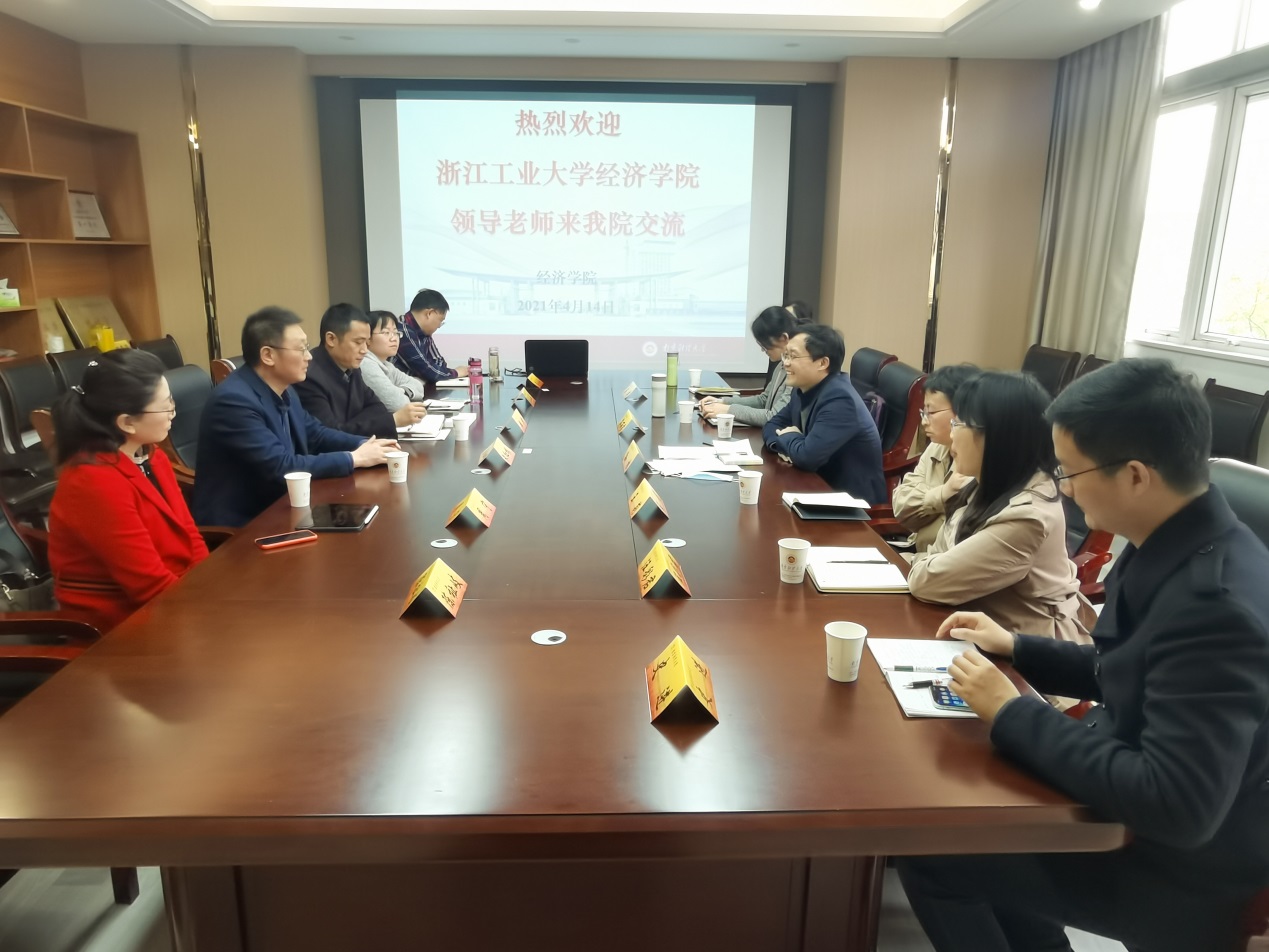 4月14日下午,浙江工业大学bat365在线登录网站注册赠送36教学院长孙林教授一行6人来我院调研交流。会议在德经楼323室举行,朱红根院长、经济系周宁主任、经济统计系程恭品主任和李庆海副主任参加了座谈会,会议由韩中副院长主持。