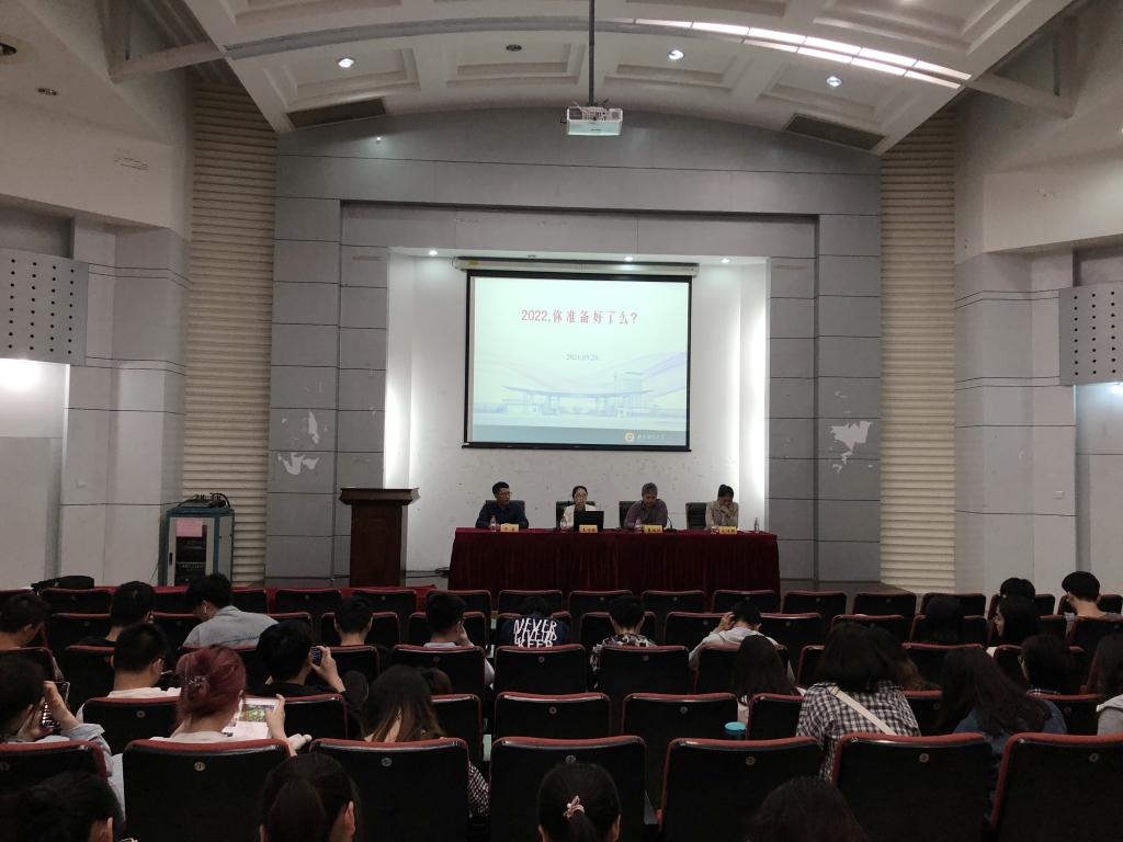 副书记袁怡琨首先具体分析了当前考研形势,总结了学院毕业生历年研究生考取情况,并以“2022,你准备好了吗”发问,引发同学们对于自身报考研究生的思考;并重点和同学们强调了考研对于提升个人职业层次,实现人生理想的重要意义。同时,她从“职前准备”方面对学生开展就业指导,她向同学们介绍了就业的渠道、利用“人职匹配理论”找寻合适的工作、企业招聘流程、获取就业信息的途径等。她建议同学们在剩余的大学阶段努力提升自己的综合素质和就业竞争力,鼓励大家多渠道获取就业信息,做好充分的求职准备。副院长崔向阳认为考研是自我提升、社会需求和就业趋势的必然要求,鼓励同学们报考双一流高校,更鼓励大家考取本校的研究生,他分析了选择报考本校研究生的优势,在选择院校和专业方面给出了建设性意见。经济系教师代表师磊、统计系教师代表武伟娜结合自身考研考博经历,分别从本科生各学科门类读研比例、本科毕业生读研的主要动机、本科毕业生选择院校最关注的因素、择校原则、时间计划、内容安排等方面对学生展开深入细致的指导。