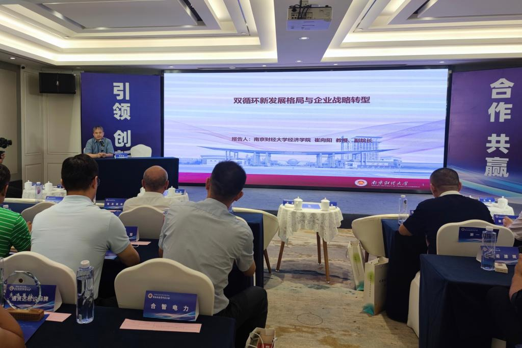 9月24日下午,我校与栖霞区委统战部联合举行“南京财经大学栖霞区总商会大学生实践就业基地”揭牌仪式,我院副院长崔向阳教授应邀作了题目为“双循环新发展格局与企业战略转型”的专题讲座,并与现场企业负责人做了辅导和交流。我校统战部领导、相关学院领导,栖霞区委统战部、区委台办、区工商联、迈皋桥街道等相关部门负责人,地方商会理事等120余人参加了活动。