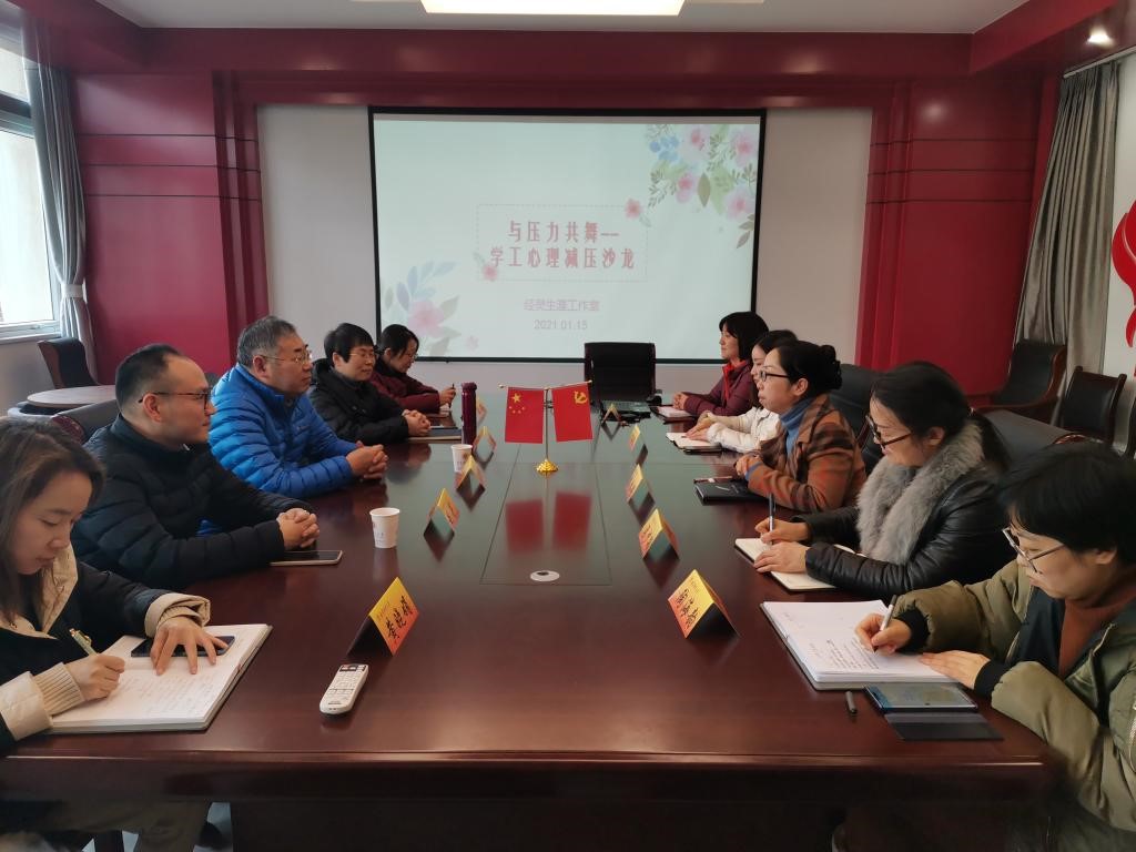1月15日下午,bat365在线登录网站注册赠送36与压力共舞--学工心理减压沙龙在仙林校区德经楼329会议室顺利开展。活动邀请校学生处副处长赵亮、心理中心高剑婷担任主讲嘉宾。学院党委书记陈耀辉、副书记袁怡琨及全体学工老师参加了此次活动。