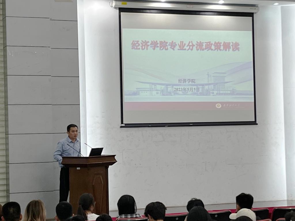 为了更好地推动2022级本科生专业分流工作,加深学生对各专业的了解,我院于2023年5月5日于德经楼二楼报告厅举办“2022级本科生专业分流宣讲会”。会议由副院长韩中主持,程恭品主任、刘余主任、华中昱主任和学院2022级全体本科生参加了会议。