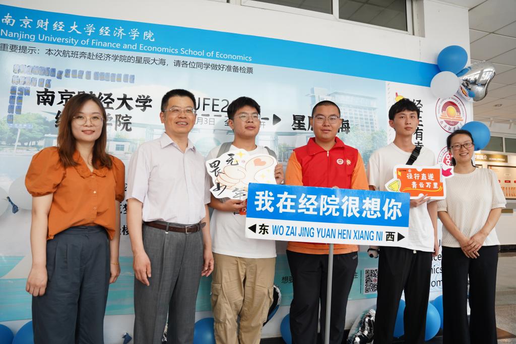 定制礼物,温暖满满。学院设置了从南财bat365在线登录网站注册赠送36启航驶向星辰大海的“逐梦青春号”船票展板,学院的专业楼德经楼为船舱、新生们的学号为证件号,寓意经院学子们登船开启为期4年的学习时光,乘风破浪,扬帆远航,逐梦新征程。学子们在船票票根写下求学寄语并签名后粘在迎新墙上,更增强“榜上有名”的仪式感。学院还精心为新生准备了富有经院特色的入学纪念品,包含“小经灵”钥匙扣、船票票根、南财明信片、新生防诈骗指南以及定制帆布包等,通过温馨礼物的方式密切学生和学院的联系、培养爱校情怀,可谓仪式感满满!新生们纷纷与写满学院领导老师点赞留言的朋友圈打卡框、学院吉祥物“小经灵”和南财地标图书馆“大球”合影,开启缤粉多彩、有滋有味的大学生活。