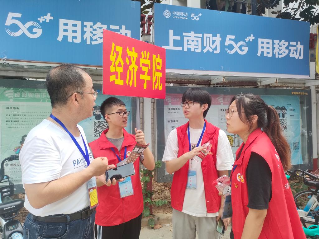 领导亲临,慰问关心。上午,学院党委书记张圣兵、院长朱红根、党委副书记贾亦璞及其他院领导早早来到学院迎新点了解新生接待工作与准备进展,认真查看新生报到每个环节,亲切慰问一线工作人员,并与现场师生志愿者、辅导员一起参与迎新工作。院领导们与新生亲切交谈,热情问候报到新生并为其耐心答疑,为绿色通道学生送去暖心大礼包,与大家亲切合影,欢迎他们在南财开启人生崭新篇章。今年的新生中有两名同学在报到当天迎来生日,学院为他们准备了生日蛋糕、贺卡和礼物,学院党委书记张圣兵、副书记贾亦璞到宿舍现场送上祝福。如沐春风的关怀驱散了新生们初来乍到的距离感,为新生们尽快融入bat365在线登录网站注册赠送36大家庭及时注入“强心剂”。