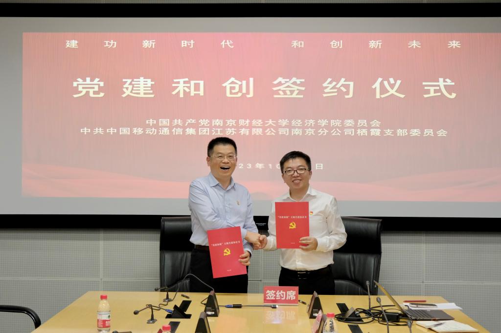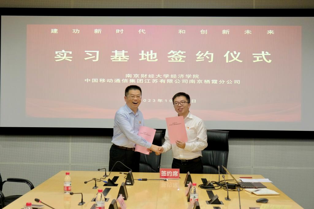 双方在江苏移动创新中心会议室座谈交流。在座谈会上,张圣兵书记表示,到访江苏移动创新中心是一次非常宝贵的交流机会,感谢南京移动对bat365在线登录网站注册赠送36多方面工作的支持。校企交流合作既是创新驱动发展的大势所趋,也是推进产教融合的的重要动力。人才的培养离不开高校的理论教学,更离不开企业的切身实践。在数字经济飞速发展的时代,学院将深入贯彻落实科教兴国战略、人才强国战略和创新驱动发展战略,着力培养学生理论联系实践的能力,激发学生创新能力和创造潜力,发挥培养人才主力军的作用。陆放总经理谈到,校企合作项目是对南京移动的高度认可和极大信任。在新时代、新征程上,内外部环境发生了深刻变化,公司的发展需要更多具备复合型潜能的人才,希望将来可以和南财bat365在线登录网站注册赠送36不断拓展合作空间和内容,在多方面加强深层次合作。向军主任以“党建和创”为主题,介绍了南京移动的党建情况,期待双方充分发挥资源优势,加强交流对接,开展党建共建、理论同学、组织共建活动,以此次结对共建为契机,实现共建双方的发展共赢。双方就产学合作、人才培养、学生就业等内容进行了深入交流,达成了持续深化校企合作、打通人才培养和产学研融合通道,实现共赢发展的共识。双方签订了党建共建协议书和实习就业基地建设协议书。