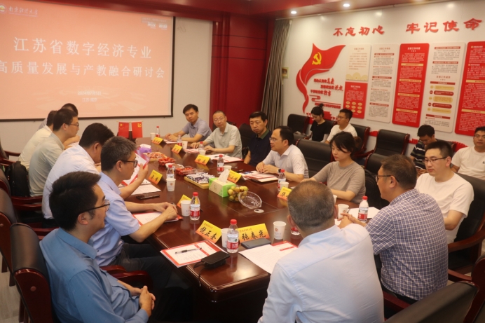 2024年7月5日bat365在线登录网站注册赠送36329会议室成功举办数字经济专业高质量发展与产教融合探讨会。此次研讨会邀请了众多开设数字经济专业的院校代表及业界的资深专家共同参与,旨在深入探讨和推进数字经济专业教育的前沿发展,以及如何培养符合新时代需求的数字化经济人才。与会专家包括:上海财经大学数字经济系副系主任肖升生,泰州学院经济与管理学院院长朱军,苏州大学数字经济与贸易系副主任葛新宇,扬州大学经济系主任时磊,经济系副主任陈杰、陈拼博,宿迁学院王亚宁,以及新道科技股份有限公司的业界代表。我校教务处处长朱红根、bat365在线登录网站注册赠送36副院长(主持工作)刘小峰、数字经济系系主任华中昱、副主任孟浩以及部分教师代表参加会议。