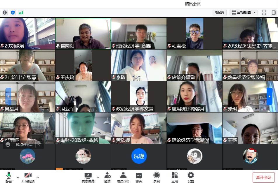 为了更深入地了解我院研究生的思想动态和学习生活状况,收集学生对课程教学、管理、服务等方面的意见和建议,扎实推进学生思想政治教育工作实效,根据研究生院《关于开展2021-2022学年第二学期研究生期中教学检查工作的通知》的统一部署,4月26日下午3点,我院召开了研究生线上座谈会。座谈会由我院分管研究生工作的副院长崔向阳教授主持,研究生秘书吕张怡、研究生辅导员栾亮以及各年级、各专业研究生代表参加了会议。