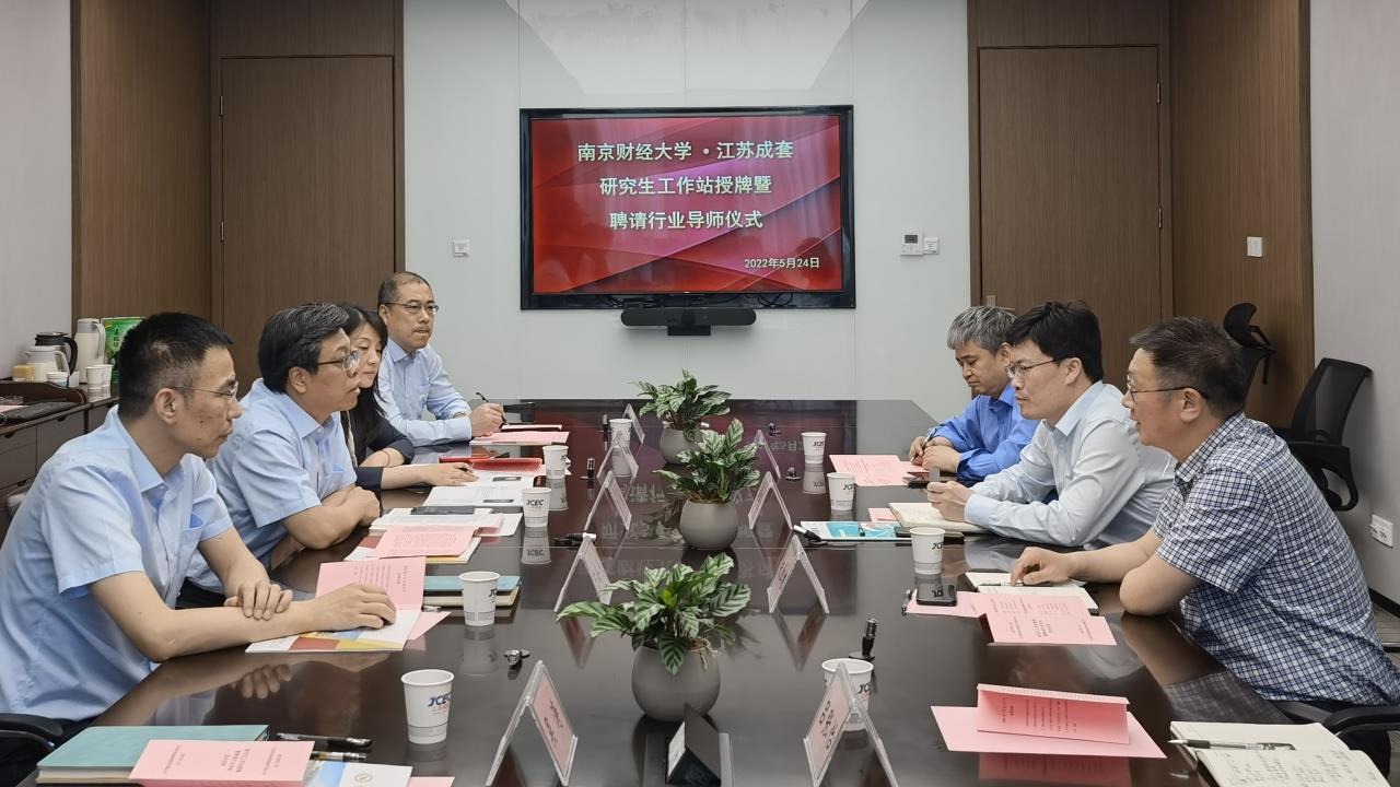 5月24日,我院开展访企拓岗促就业专项行动,学院领导带队走访江苏省设备成套股份有限公司,并为我校和江苏省设备成套股份有限公司联合建设的江苏省研究生工作站举行挂牌仪式;同时举办了我院专硕行业导师的聘任仪式。研究生院副院长杜修立、bat365在线登录网站注册赠送36院长朱红根、bat365在线登录网站注册赠送36副院长崔向阳,江苏省设备成套股份有限公司董事长黄旭、总经理陈海涛、副总经理章雅、我院研究生秘书吕张怡以及成套公司部分工作人员参加了挂牌、聘任仪式。