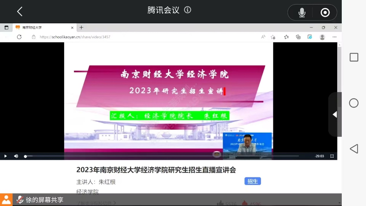 朱红根院长首先介绍了学院基本情况、各专业发展趋势、学科特点、专业特色、办学实力以及招生情况、学生就业等内容。随后,崔向阳副院长、袁怡琨副书记与考生进行了在线答疑互动,解答了我院研究生招生政策等相关问题。
