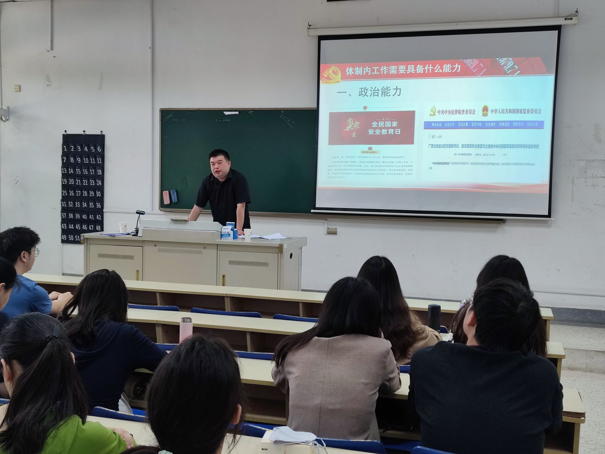 袁明副主任分享了自己对体制内工作的理解与感悟,并为学生深入介绍了体制内工作所必需的核心能力。他指出在体制工作需要具备较好政治能力、学习能力、写作能力、沟通能力突发问题的解决能力,在这些能力中,政治能力是公务员的首要素质,而学习与写作能力则是实现自我提升的重要助力。沟通能力在职场中同样至关重要,而处理突发问题解决问题的能力培养则建立在对工作、情况和流程的熟悉程度之上。