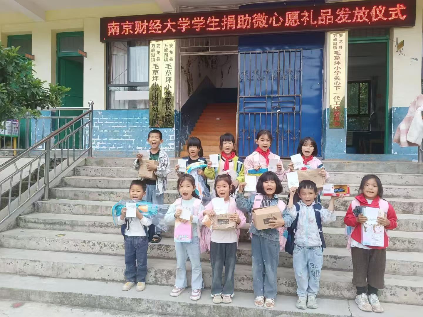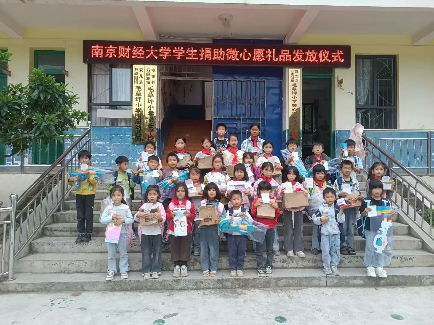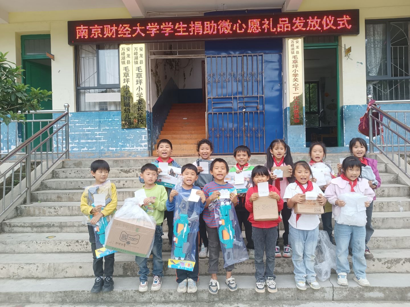 毛草坪小学地处贵州偏远山区,许多孩子因父母外出打工而成为留守儿童。为了让他们度过一个难忘的儿童节,在“六一”儿童节前夕,我院研究生会发起“微心愿·大梦想”公益活动,与毛草坪小学的教师线上联系,收集孩子们质朴而纯真的“微心愿”,通过自愿认领、集中购买、统一邮寄的方式,将这些富有爱心的礼物在“六一”儿童节前夕,送到毛草坪小学孩子们的手中,用爱心与行动助力山区儿童成长。
