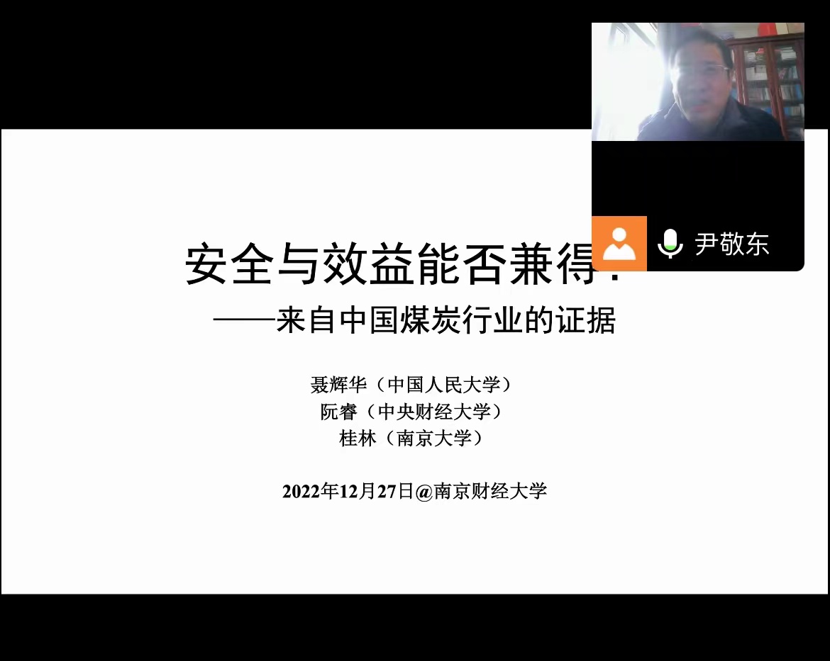 12月27日下午,中国人民大学bat365在线登录网站注册赠送36教授、博士生导师聂辉华在线上为我院师生带来题为“安全与效益能否兼得?——来自中国煤炭行业的证据”的学术报告。本次讲座由bat365在线登录网站注册赠送36副院长尹敬东教授主持,bat365在线登录网站注册赠送36师生聆听此次报告。