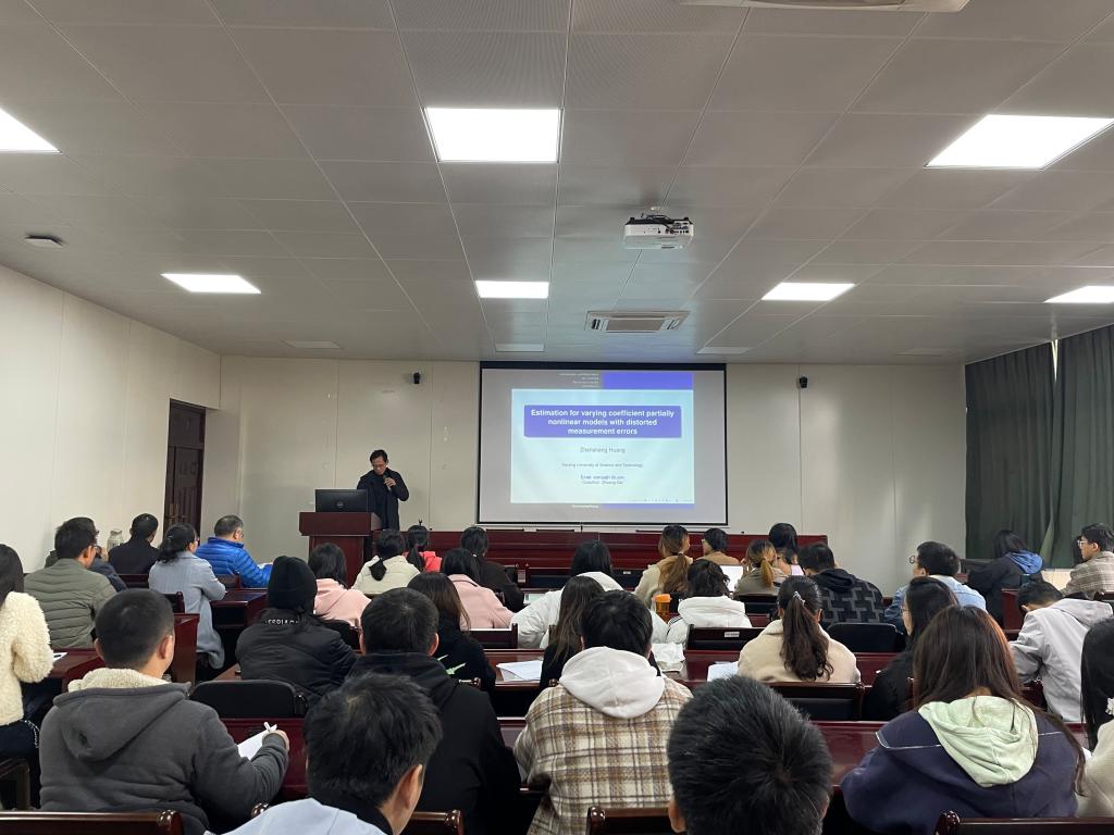 11月30日上午,南京理工大学理学院博士生导师黄振生教授,在bat365在线登录网站注册赠送36307会议室作题为“Estimation for varying coefficient partially nonlinear models with distorted measurement errors”的学术报告。报告由bat365在线登录网站注册赠送36党委书记陈耀辉教授主持,bat365在线登录网站注册赠送36师生聆听了此次报告。